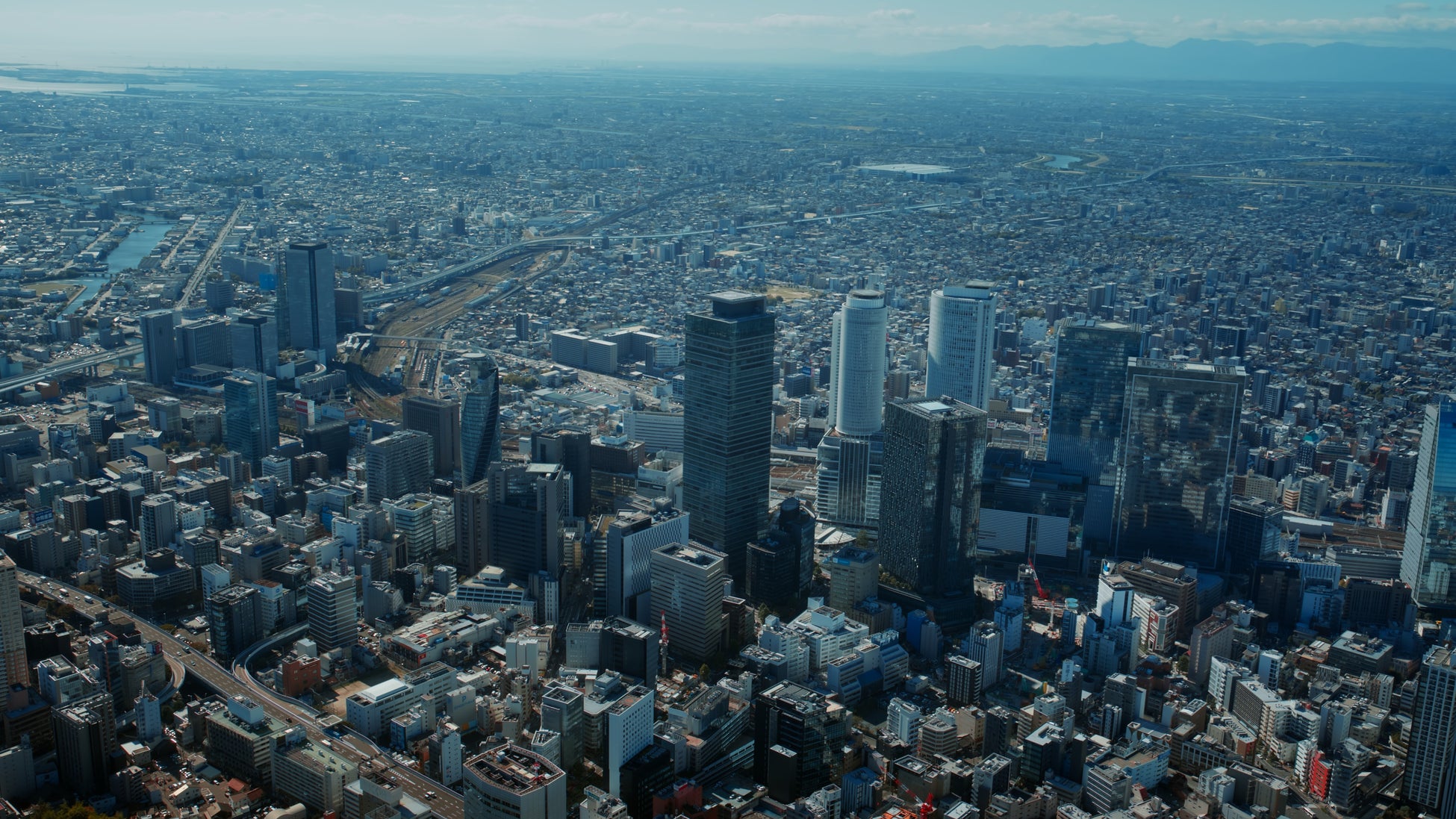 「ミッドランドスクエア スカイプロムナード コンセプトムービー」の制作にあたっては、特別な飛行許可を得て名古屋中心市街地上空からの昼夜のヘリコプター空撮やドローン空撮を行うなど、スカイプロムナードの眺望のダイナミックさを表現するためさまざまな撮影技術を駆使しています。