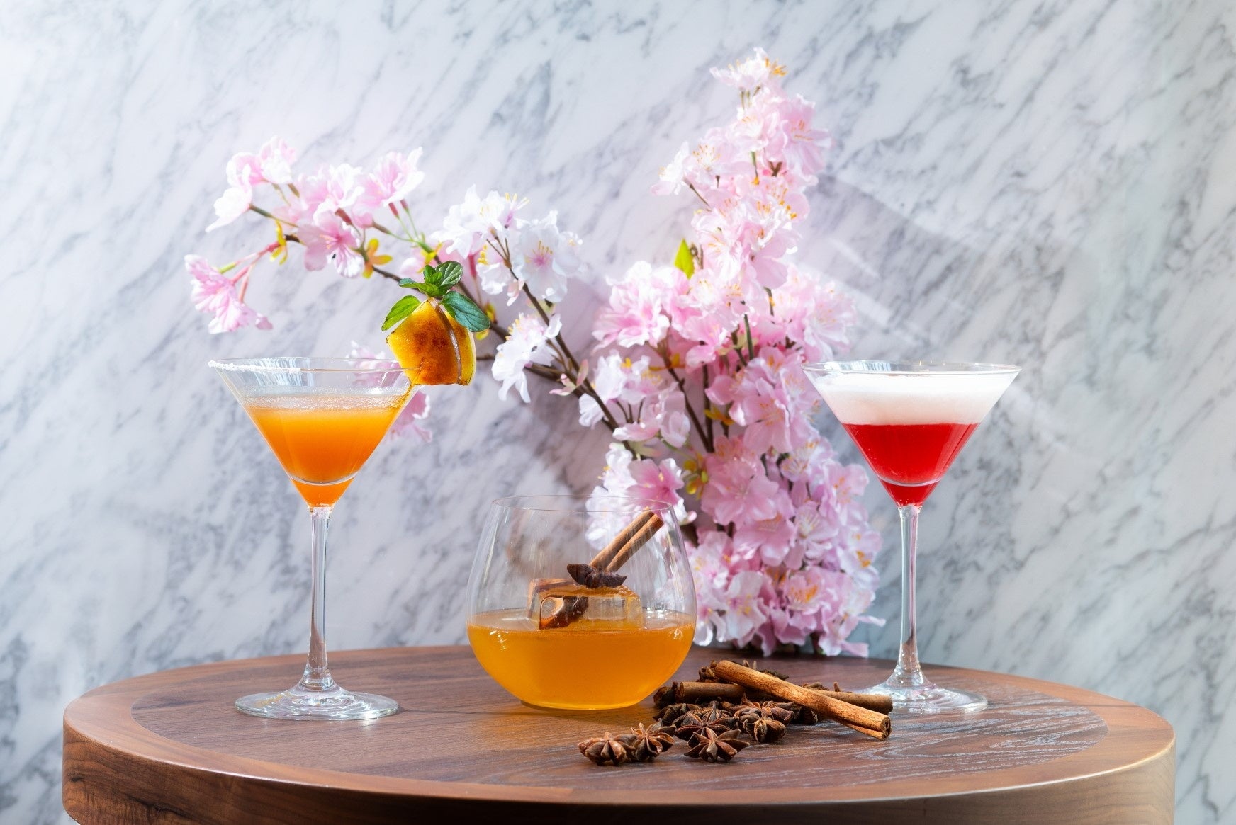 陽春に香り引き立つ、3種類のカクテルをご用意いたしました。