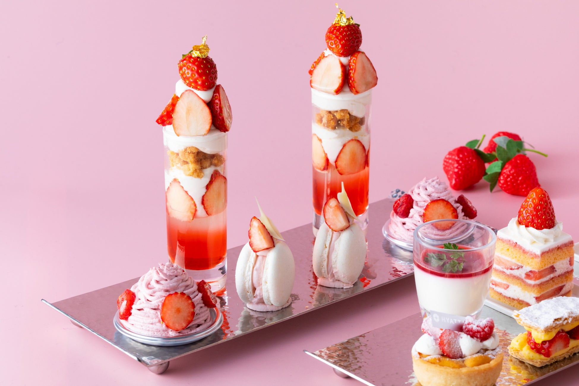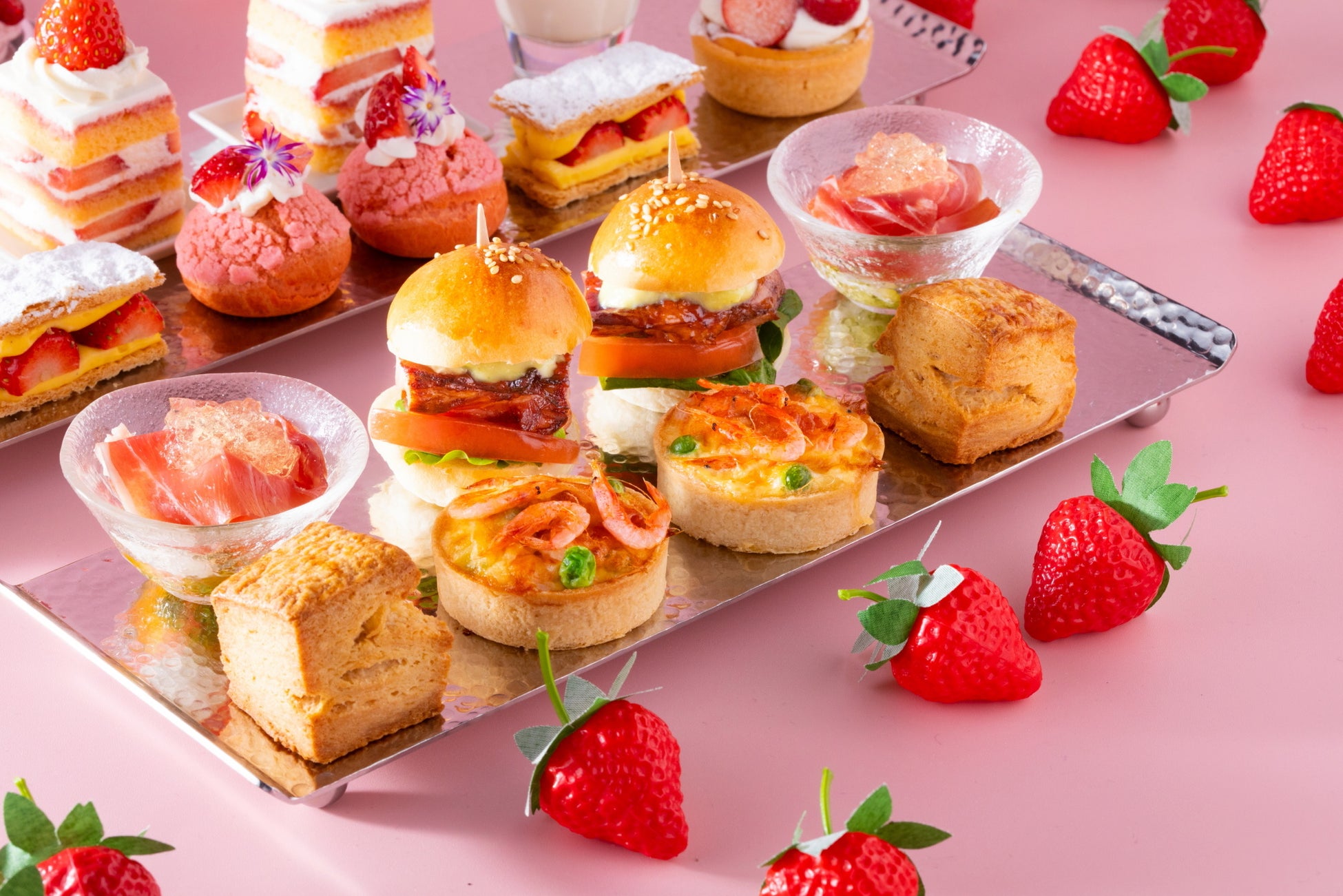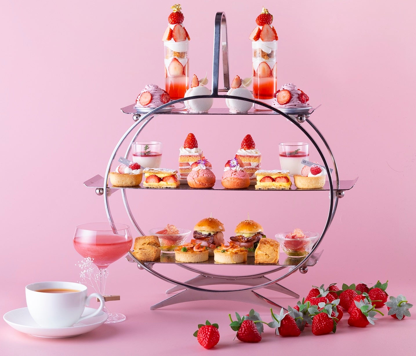 大変ご好評を博している『イチゴ×チョコレート』がテーマの「ストロベリー・アフタヌーンティー Season1」。3月・4月は『イチゴ×ミルク』をテーマに、みずみずしく甘酸っぱいイチゴとミルクの風味豊かなコクをお楽しみいただける「ストロベリー・アフタヌーンティー Season2」をご用意いたします。