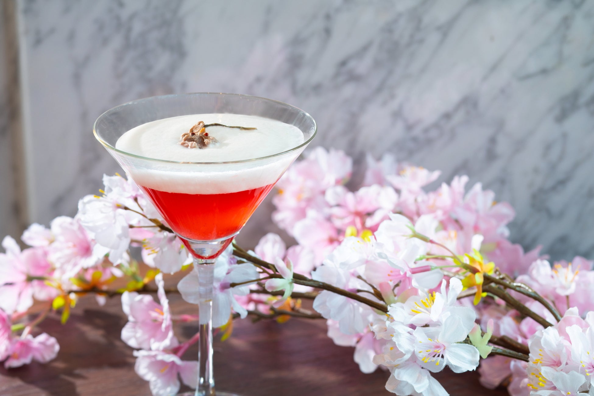 春の風物詩「桜」を存分に味わえる一杯。桜餅のような香りが特徴の「ズブロッカ バイソングラス」にチェリーブロッサムティーを 漬け込み、自然由来の本格的な香りに。トップには桜とヨーグルトのフォームをのせ、まろやかで爽やかなカクテル。
