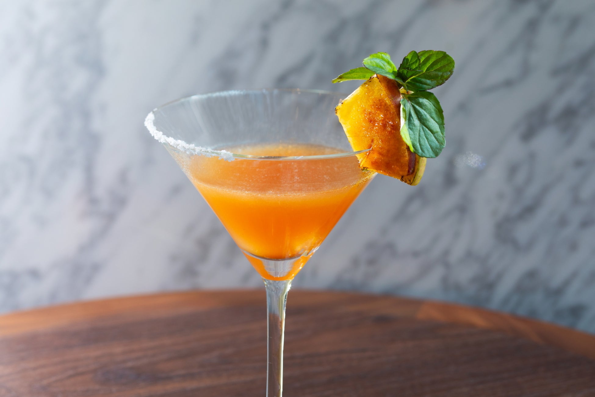 テキーラ 「Cuervo 1800 Reposado 」を使用。すりおろしリンゴを加え、飲み心地の良いカクテル。 リンゴの食感と心地よい酸味、 テキーラの甘みが見事にマッチした一杯。
