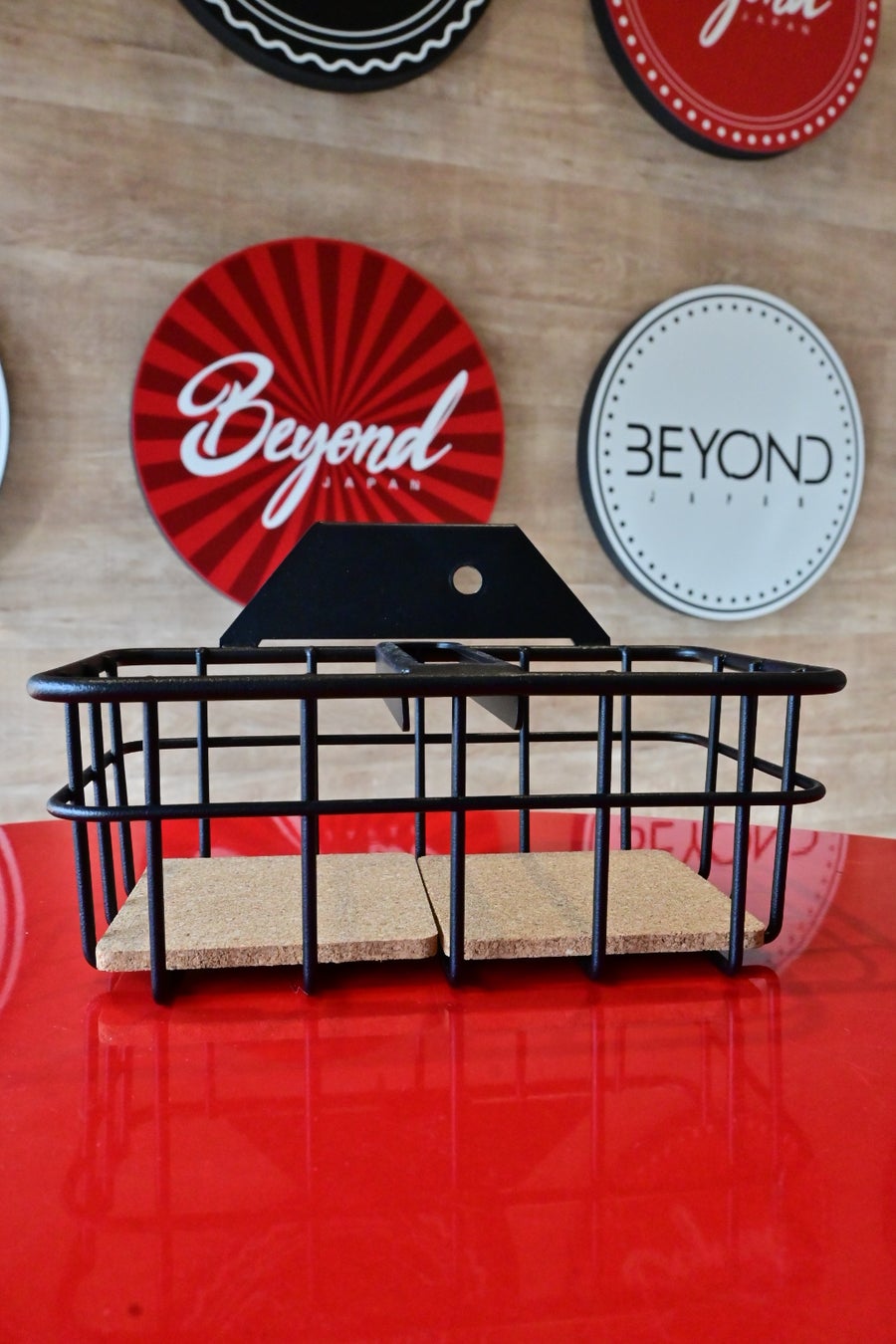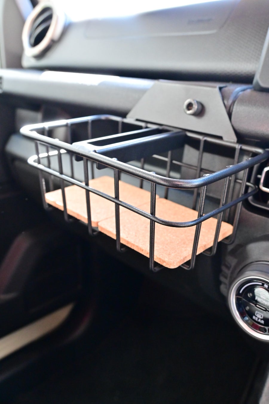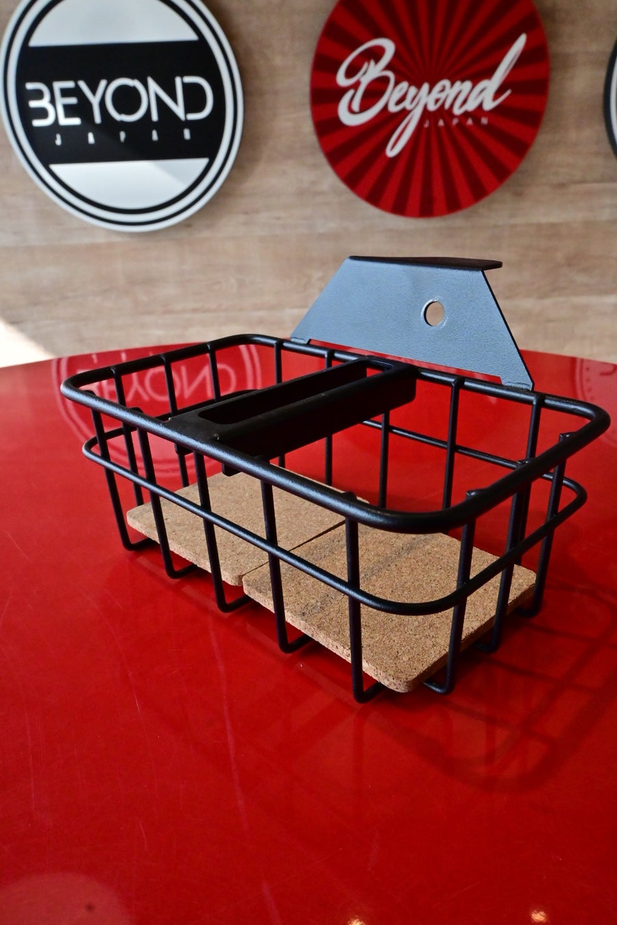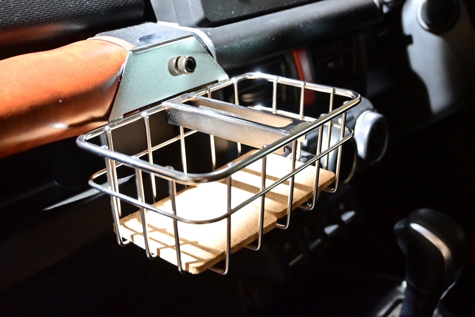 BEYONDJAPANのカスタムパーツの中でも人気の高い「ドリンクバスケット」。ドライバーの利便性を高めるアイテムとして、多くのユーザーから支持されています。車内のドリンクホルダーとしての機能性はそのままに、ブラックカラーでよりスタイリッシュな印象を演出します。