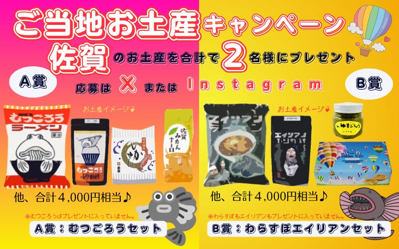 旅コラム公開と同時に、たびほりスタッフ厳選のご当地お土産(お一人様4,000円相当)を2名様へプレゼントするSNSキャンペーンを期間限定で実施いたします。X(旧:Twitter)又はInstagramいずれかでご応募いただけますので、ぜひご参加ください。