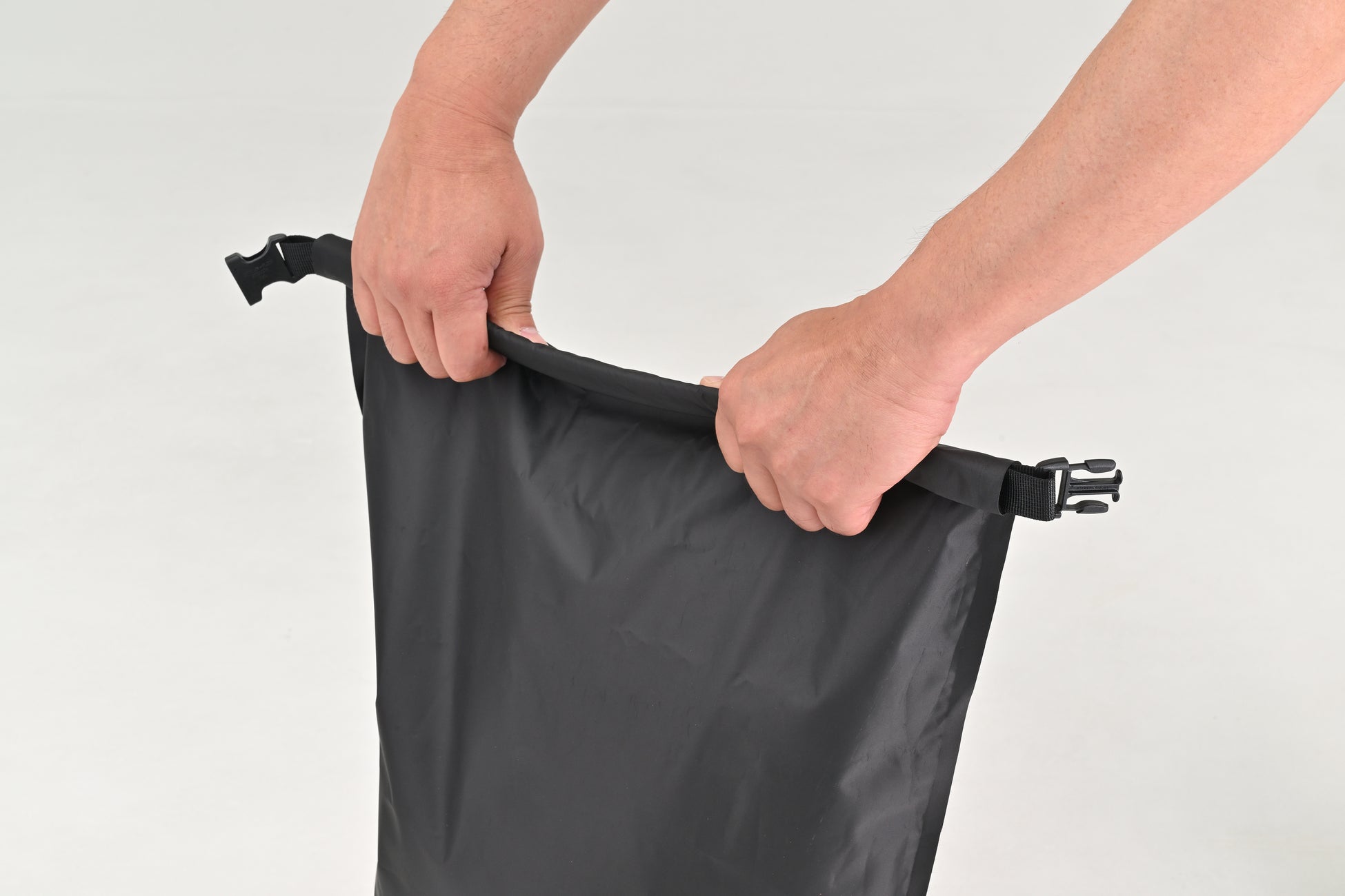 コンパクトに収納でき、水が中に入りにくいロールトップタイプでキャンプなどに役立つドライバッグです。