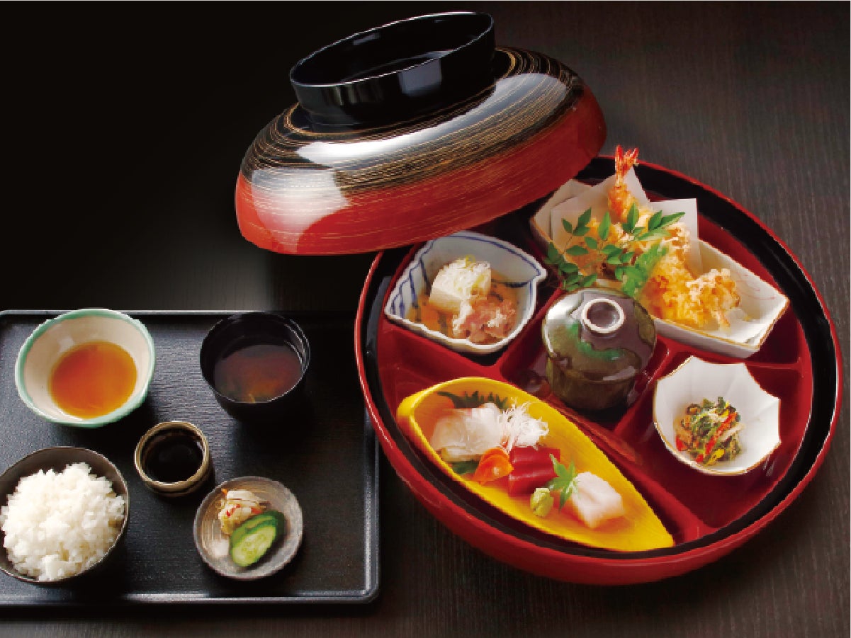 館内レストラン「神戸温泉 創作ダイニング 蒼 – sou -」では、大きな大名碗でご提供する名物「すずらん御膳」や、「極み海鮮丼 ひつまぶし」など、真心込めて作ったお食事をご用意しております!