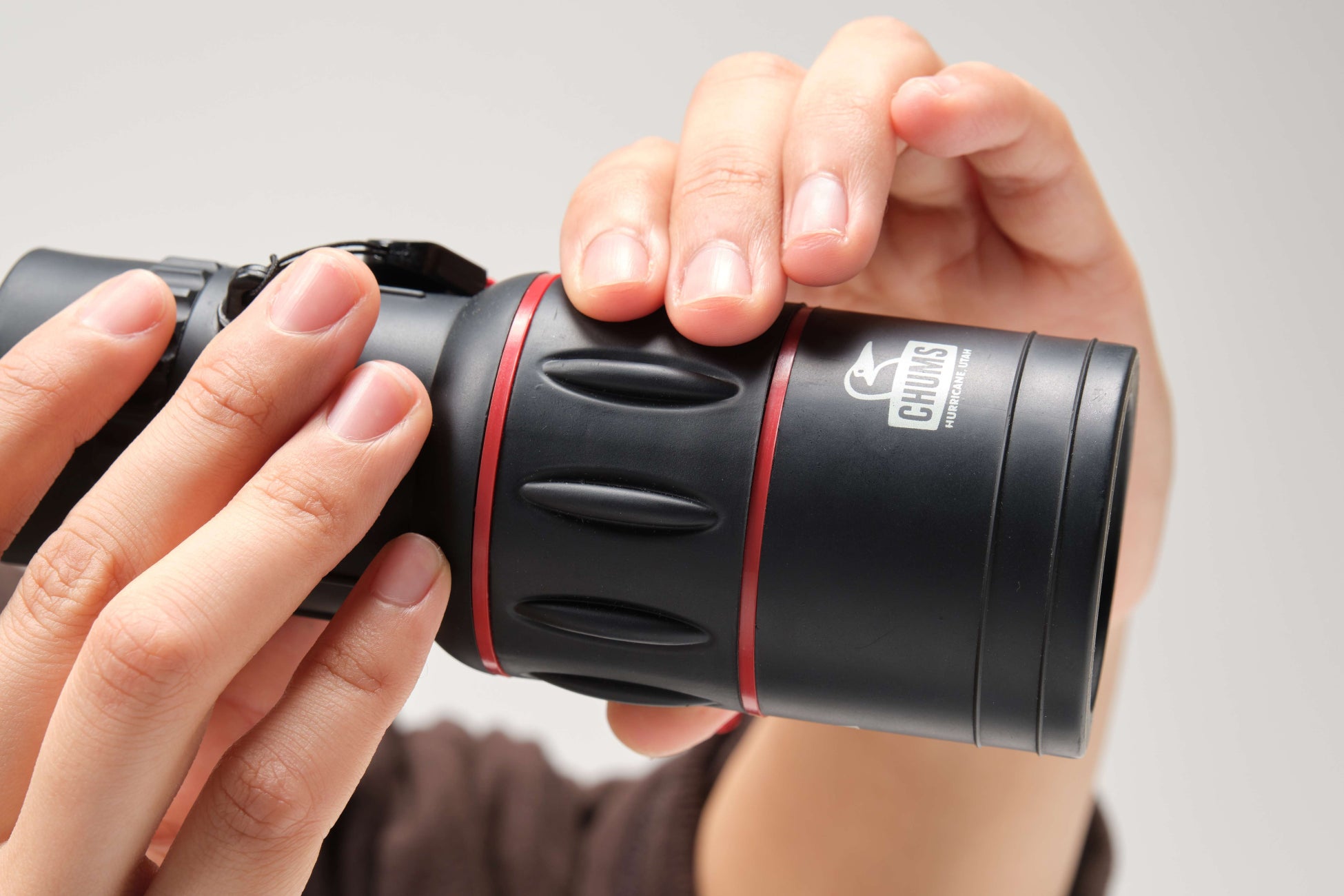 そんなCHUMSとコラボした単眼鏡は、本体に配されたブービーバードと、ロゴの入った赤いストラップが目を引く、バードウォッチングにぴったりなデザイン!