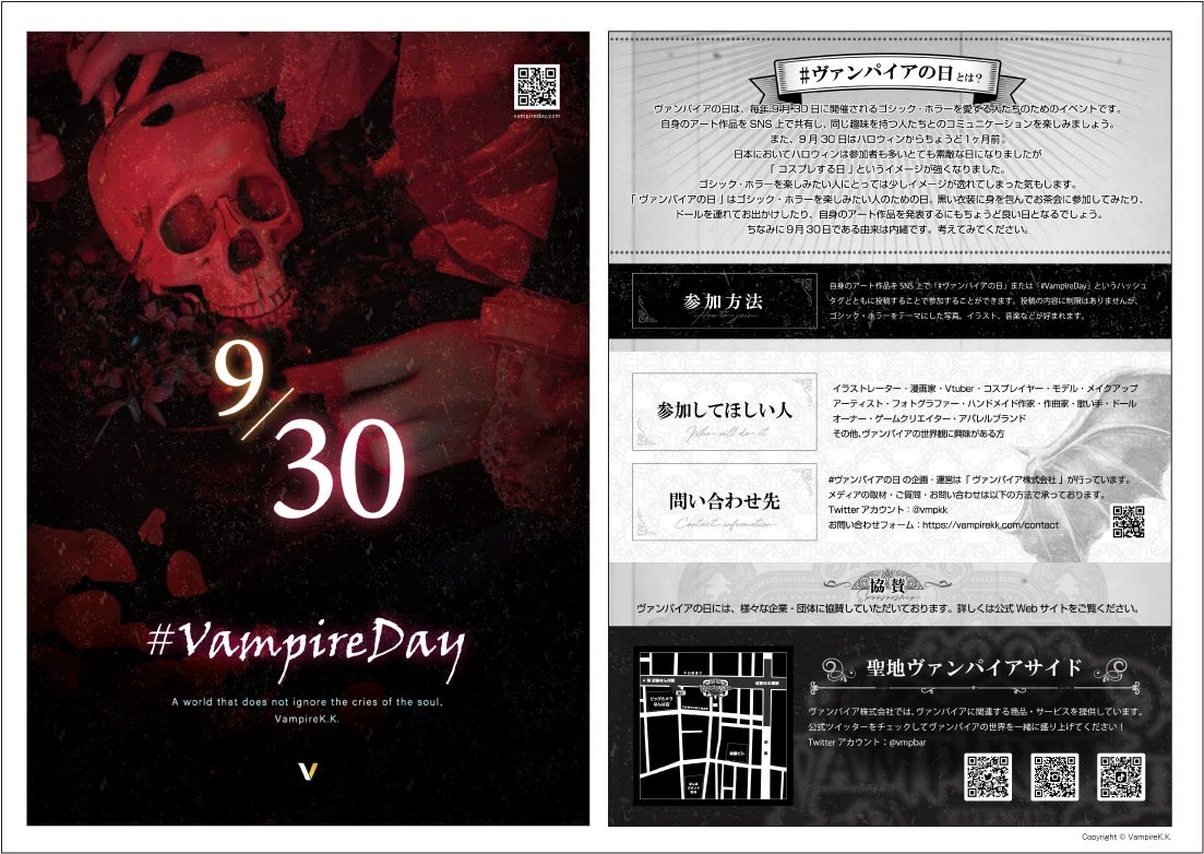 毎年9月30日は “ヴァンパイアの日” という記念日を啓蒙しています。ダークファンタジーを愛する人々が、その世界観を思う存分楽しめる日をつくりたいという想いからはじまりました。X(旧Twitter)では昨年、およそ3万人の方が「ヴァンパイアの日」を使用してくださり、日本から世界へと少しずつ影響力を強めています。