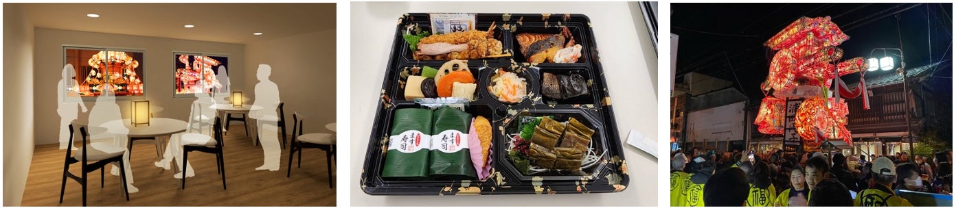 大迫力の行燈のぶつかり合いが間近で見られる観覧席や地元食材を使用した特別弁当、空き家を改装した特別な休憩スペースも