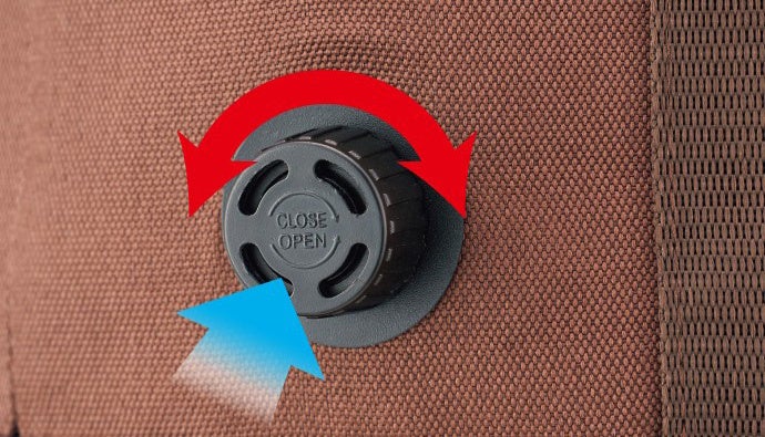 使い方は、本体側面のバルブをひねるだけ。自動で空気が注入されるので誰でも簡単に使用可能。