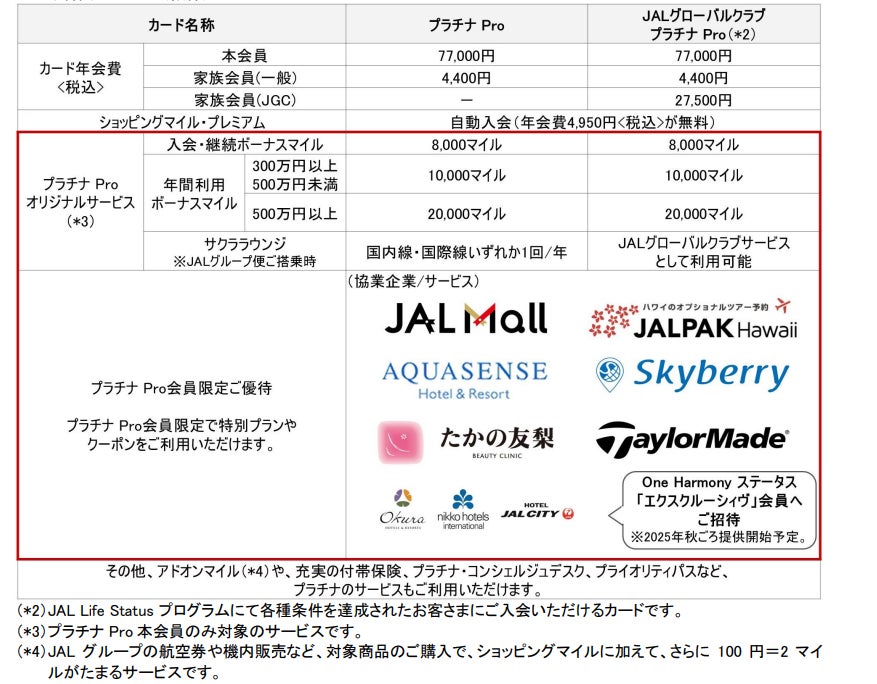 ※「プラチナ Pro」については、2025年4月16日(水)正午以降、公式サイト(https://jalcard.jal.co.jp/rd/platinumpro2504/)でもご覧いただけます。