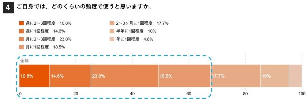3、使用頻度は月に2~3回が最多で、6割以上は毎月の訪問を想定。二拠点での暮らし需要が高まる。
