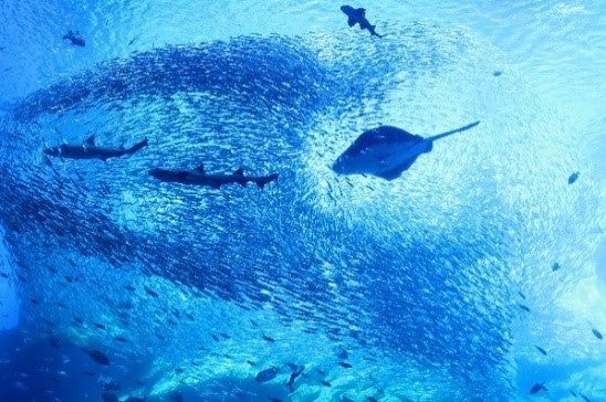 約2万5000尾のマイワシたちが主役となり、躍動感あふれる群れの泳ぎで魅了するプレミアムショー「Sparkling of Life」を楽しみいただけます。