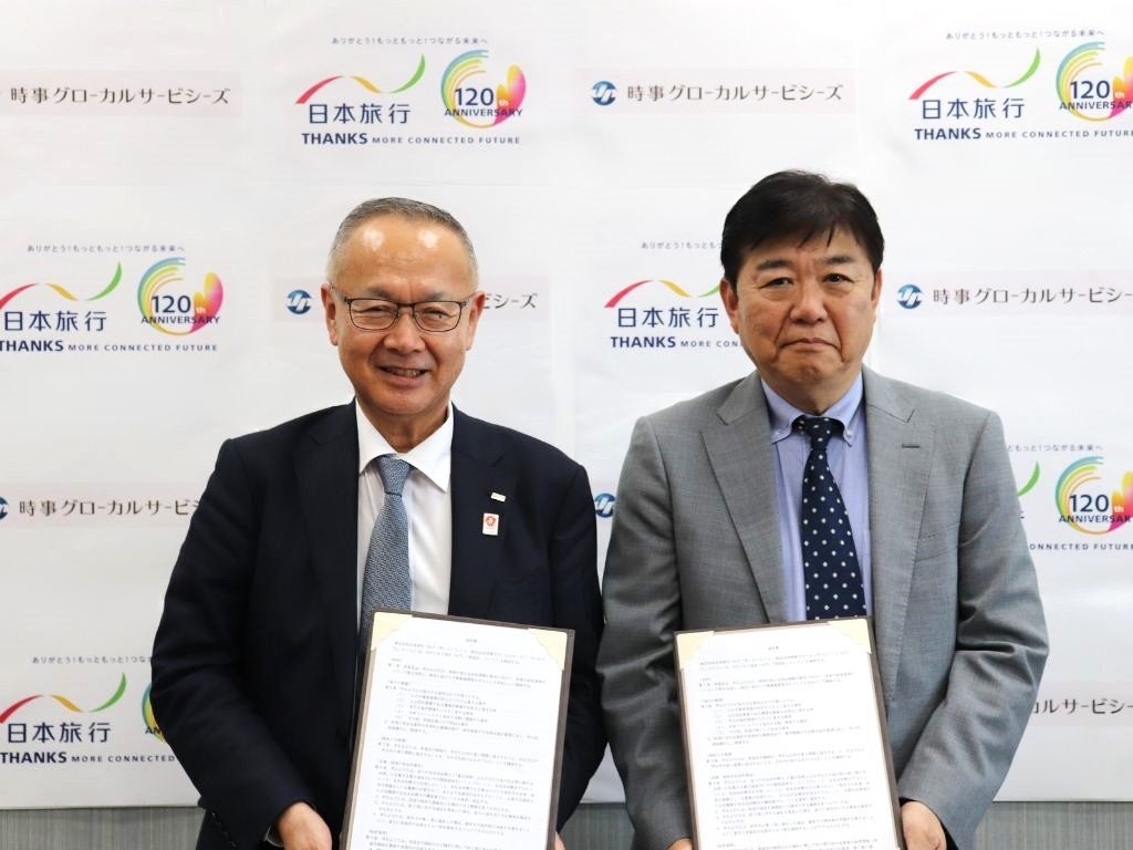 株式会社日本旅行(東京都中央区、代表取締役社長:小谷野悦光、以下日本旅行)と株式会社時事グローカルサービシーズ(千葉県いすみ市、代表取締役社長:杉本一郎、以下JPGS)は、地域が抱える社会課題の解決に向けて、両者の経営資源やノウハウ等を活用し、相互に協力して事業展開を行うことを目的として連携協定を締結しました。