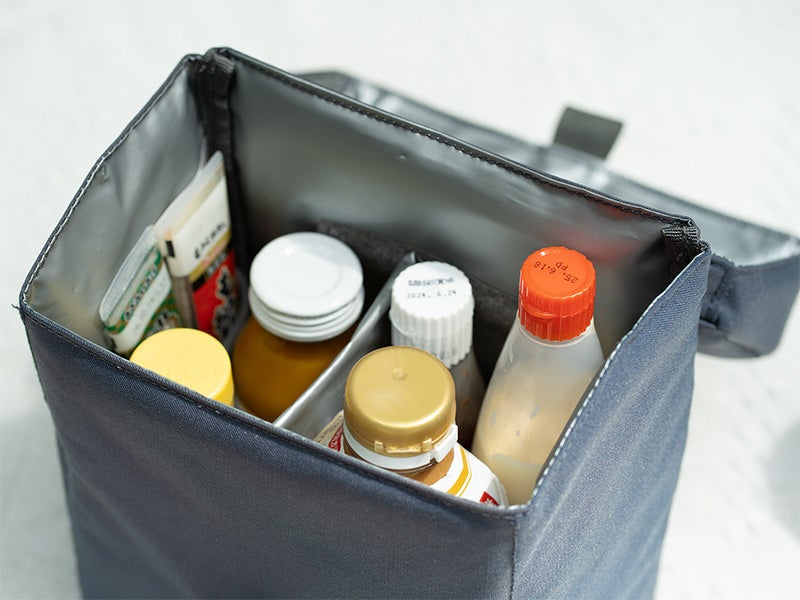 週末の買い出しにも頼もしい容量で、大型トレーを平置きできるマチや4つの保冷剤ポケットを備えています。