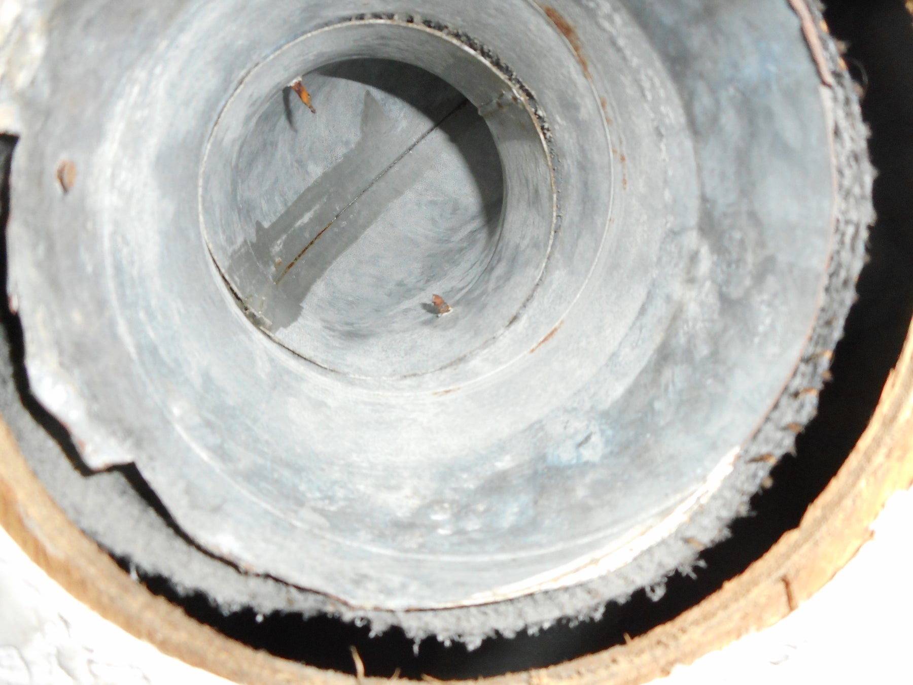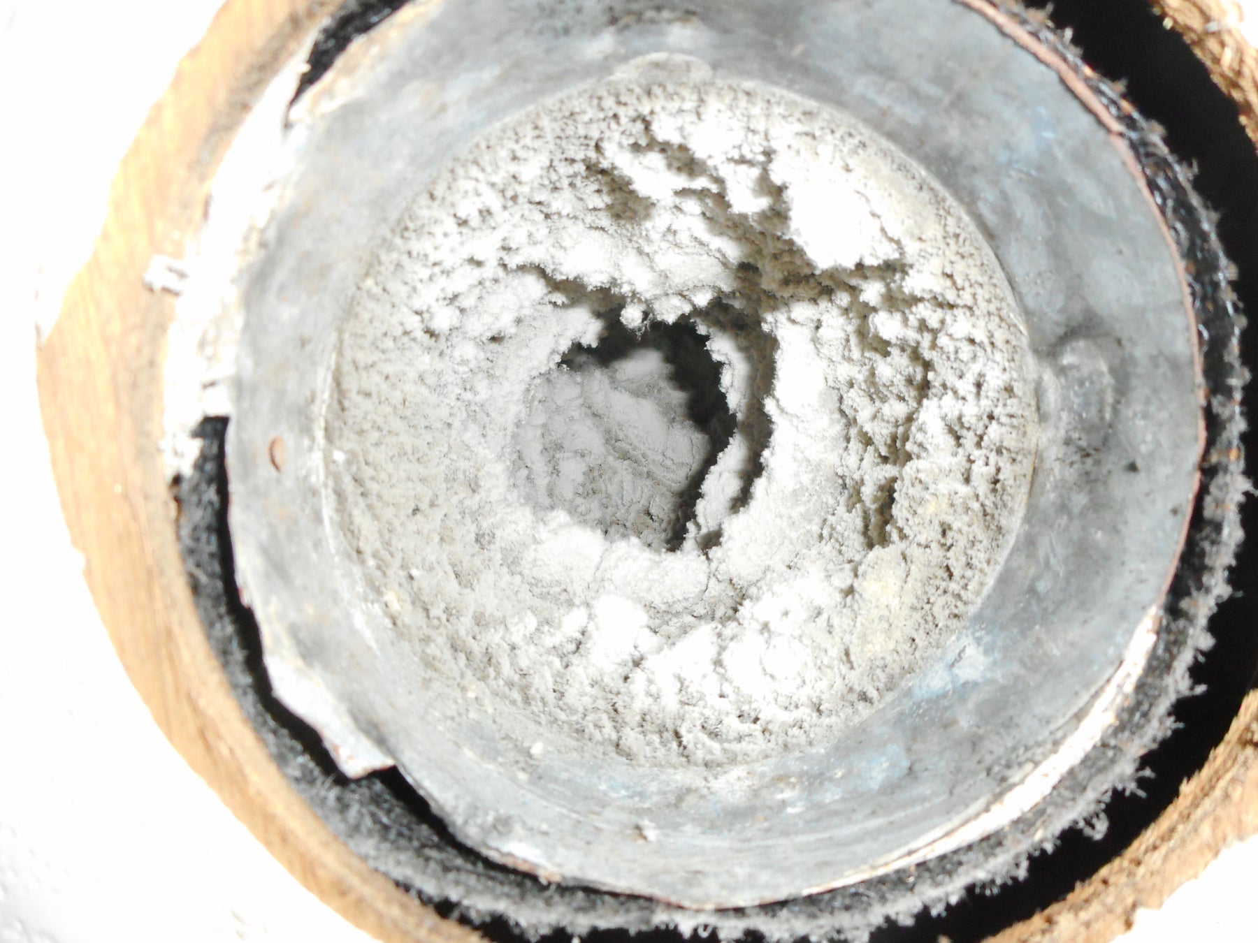 下記の写真は、アスカサービスが実際に清掃を行ったマンションの換気ダクト内部。ホコリ、カビ、油分が層となり、空気の通り道を塞いでいました。
