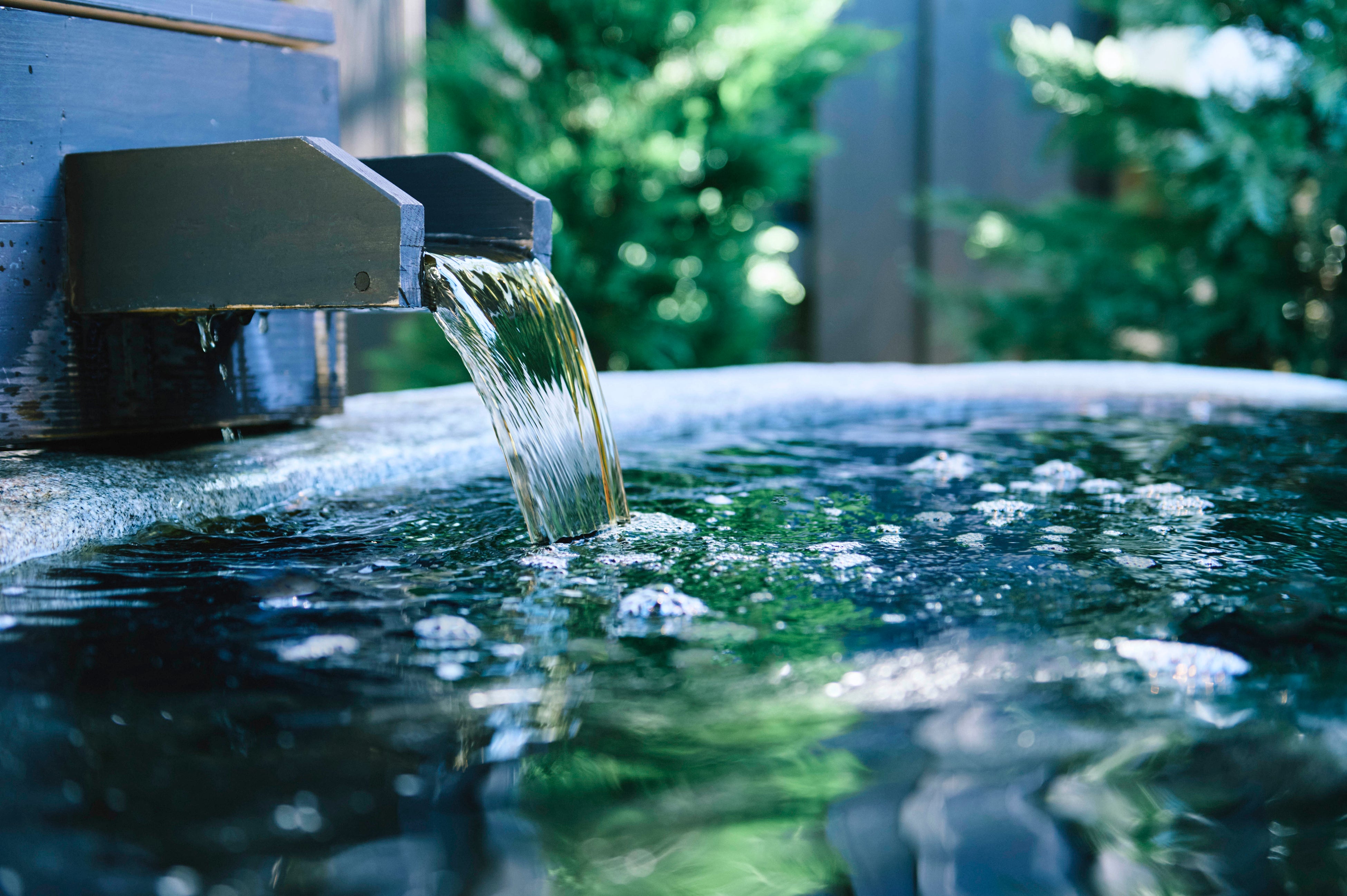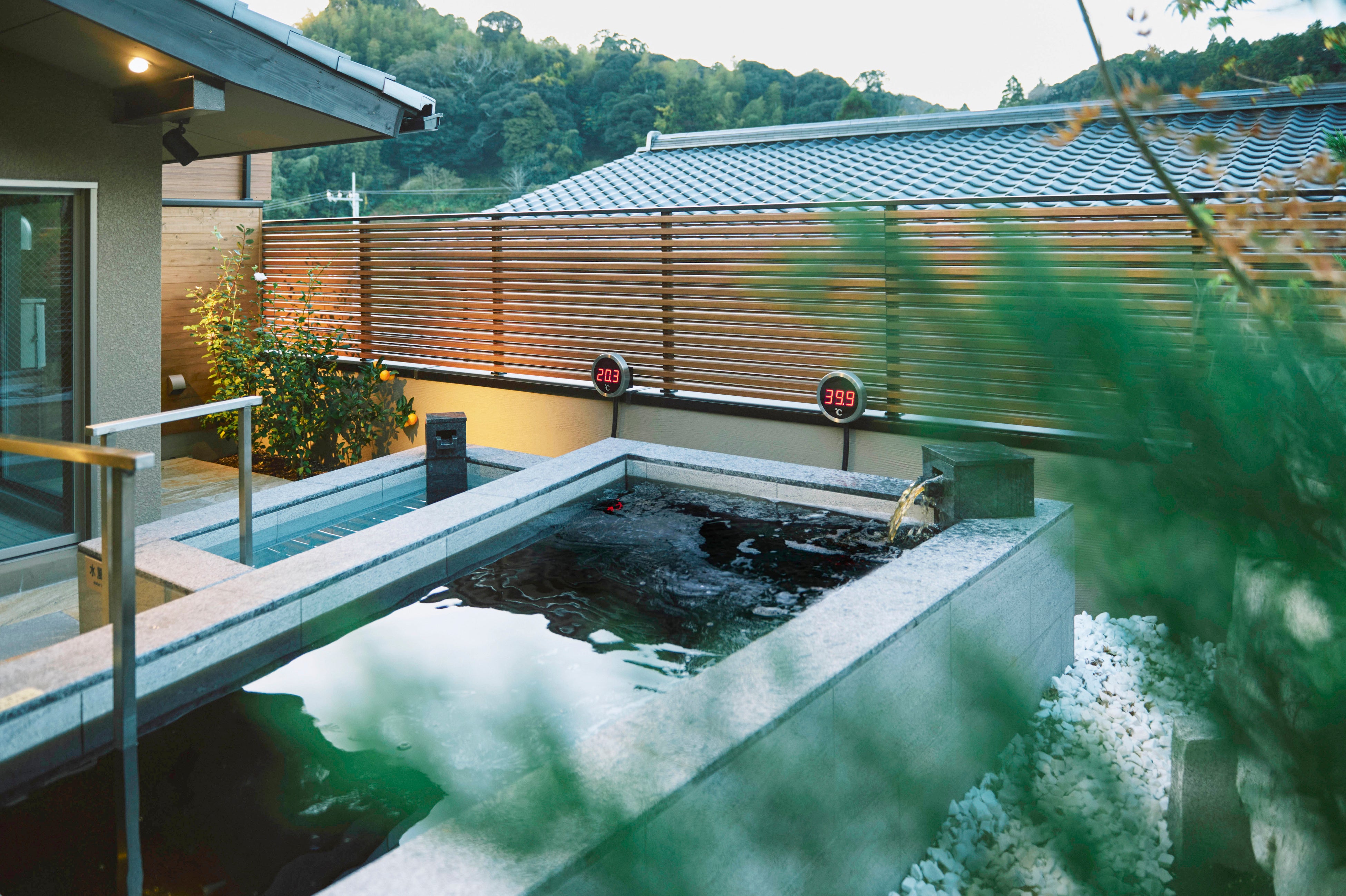 いすみ市の里山の広大な敷地に立ち並ぶヴィラタイプの客室は、プライベートを重視した設計で、すべての客室に天然温泉のお風呂を完備。”黒湯”と呼ばれるモール泉は、地層から染み出た有機成分を含み、肌にやさしいメタケイ酸を多く含む名湯です。