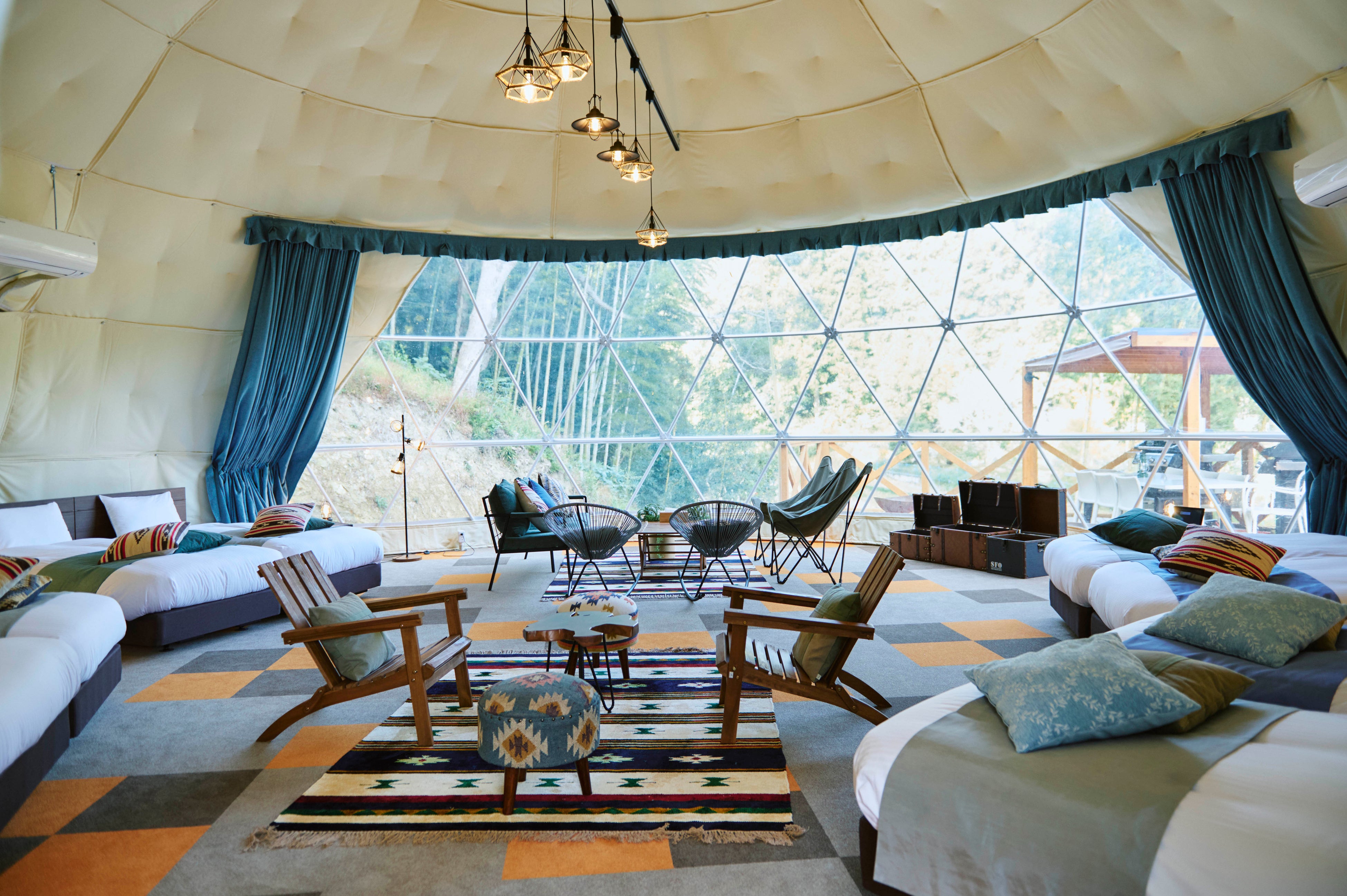 客室は、古民家ヴィラ・プライベートヴィラ・ドームヴィラなど多彩なスタイルが揃い、それぞれが自然との一体感を感じられる設計。