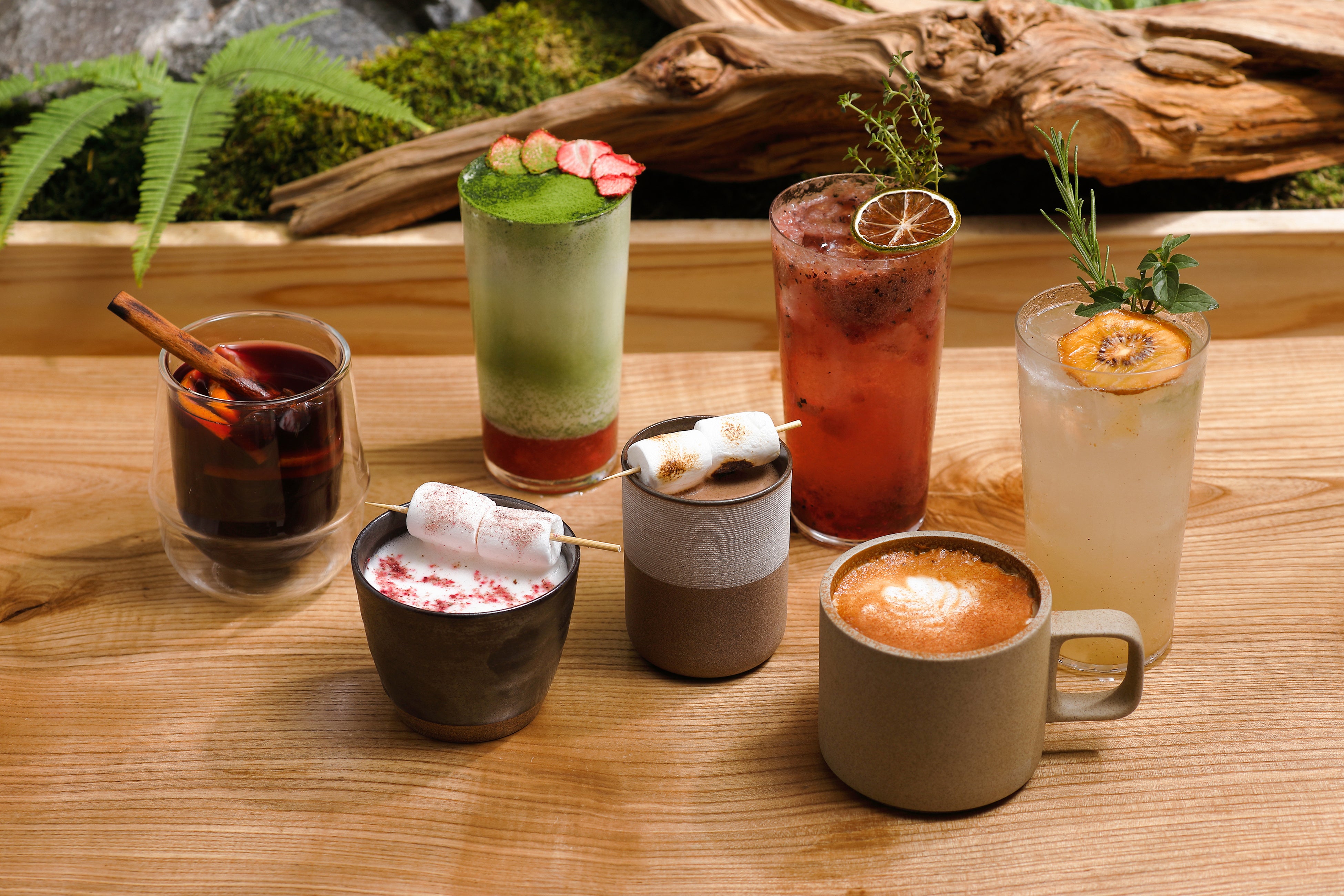 クリスマスらしい華やかなカフェのドリンクは、スパイスやホットワインなどで、心もほっと温めるドリンク。味噌とカルダモンを使ったホットチョコレートなど、発酵食品で味の奥深さを加えながら、シックスセンシズならではの体にやさしいドリンクをご提供します。
