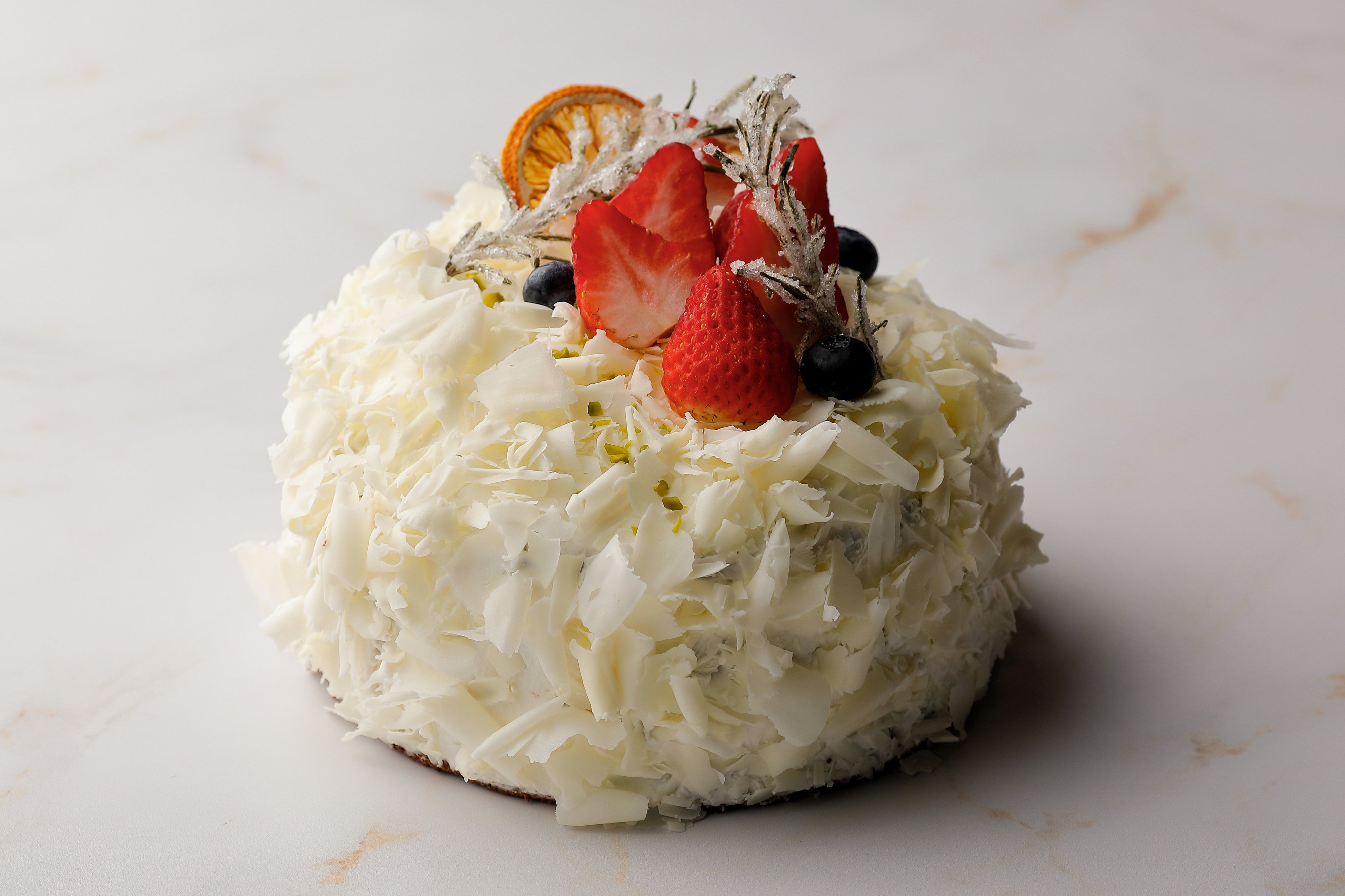 ホワイトフォレストはキルシュ(さくらんぼ酒)を使った定番のブラックフォレストに苺を使い、ホワイトチョコで雪化粧のように仕上げました。さっぱりとした甘さとフルーティーな香りが特徴で、華やかなクリスマスを楽しみたい方にぴったりです。