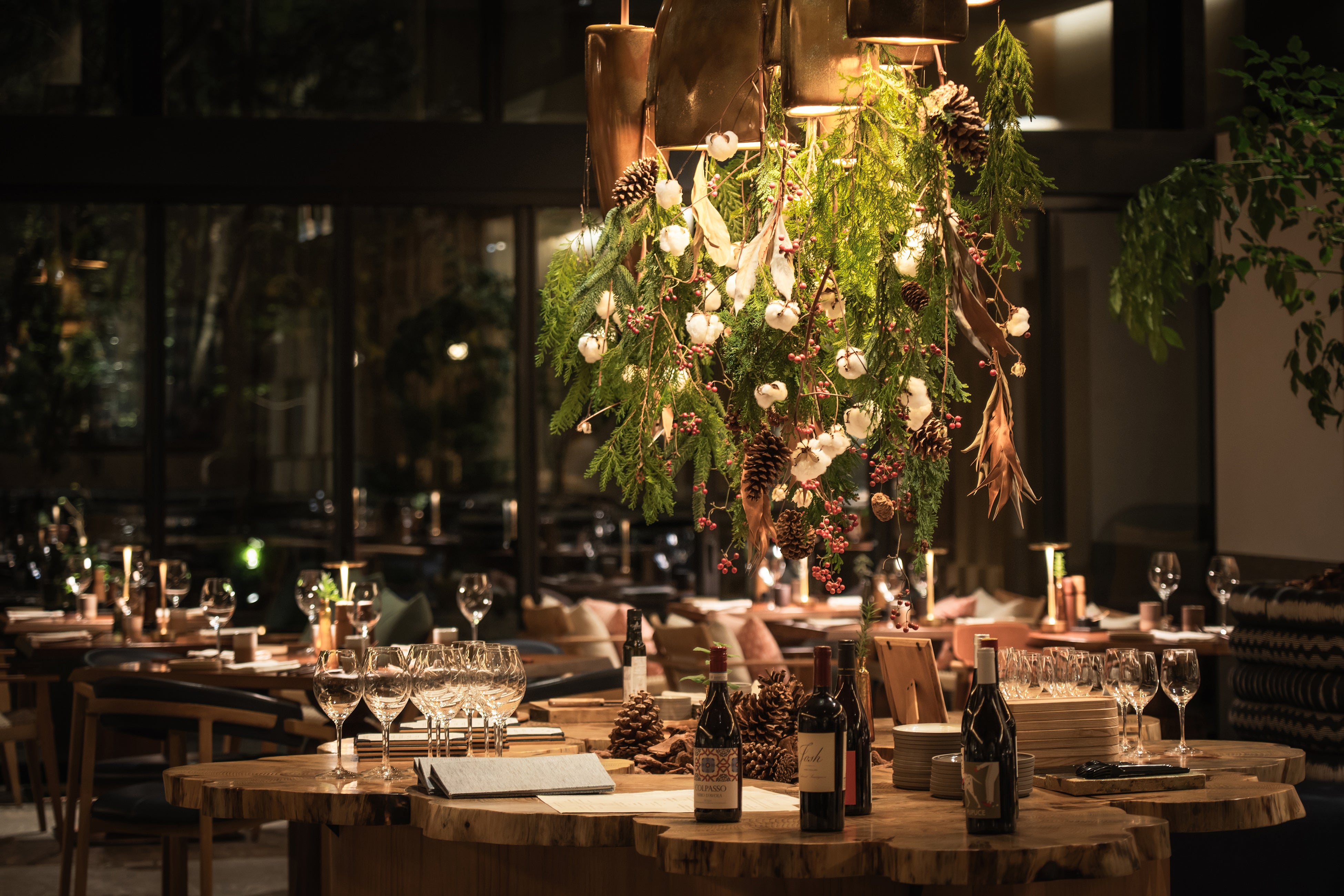 シーズナルダイニング「Sekki(節気)」も華やかなクリスマス装飾に彩られ、ライトアップされたテラスや庭園とともに、祝福のムードを演出します。