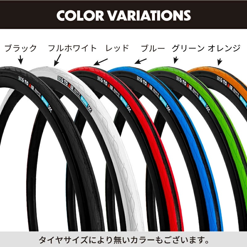 豊富な5サイズ(23c~35c)と7色のカラーバリエーションで、カスタムも自由自在です。