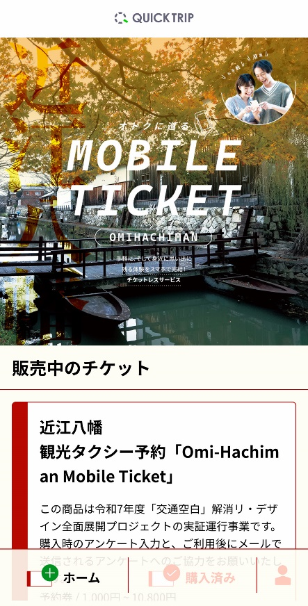 レシップホールディングス株式会社(本社:岐阜県本巣市、代表取締役社長:杉本 眞)の連結子会社レシップ株式会社(本社:岐阜県本巣市、代表取締役社長:北野 元昭、以下:レシップ)は、観光・イベント向けモバイルチケットシステム「QUICK TRIP Ticket」を活用し、2025年10月11日(土)から、滋賀県近江八幡市で運行を開始する周遊タクシーで利用できるモバイルチケットの取り扱いを開始しています。