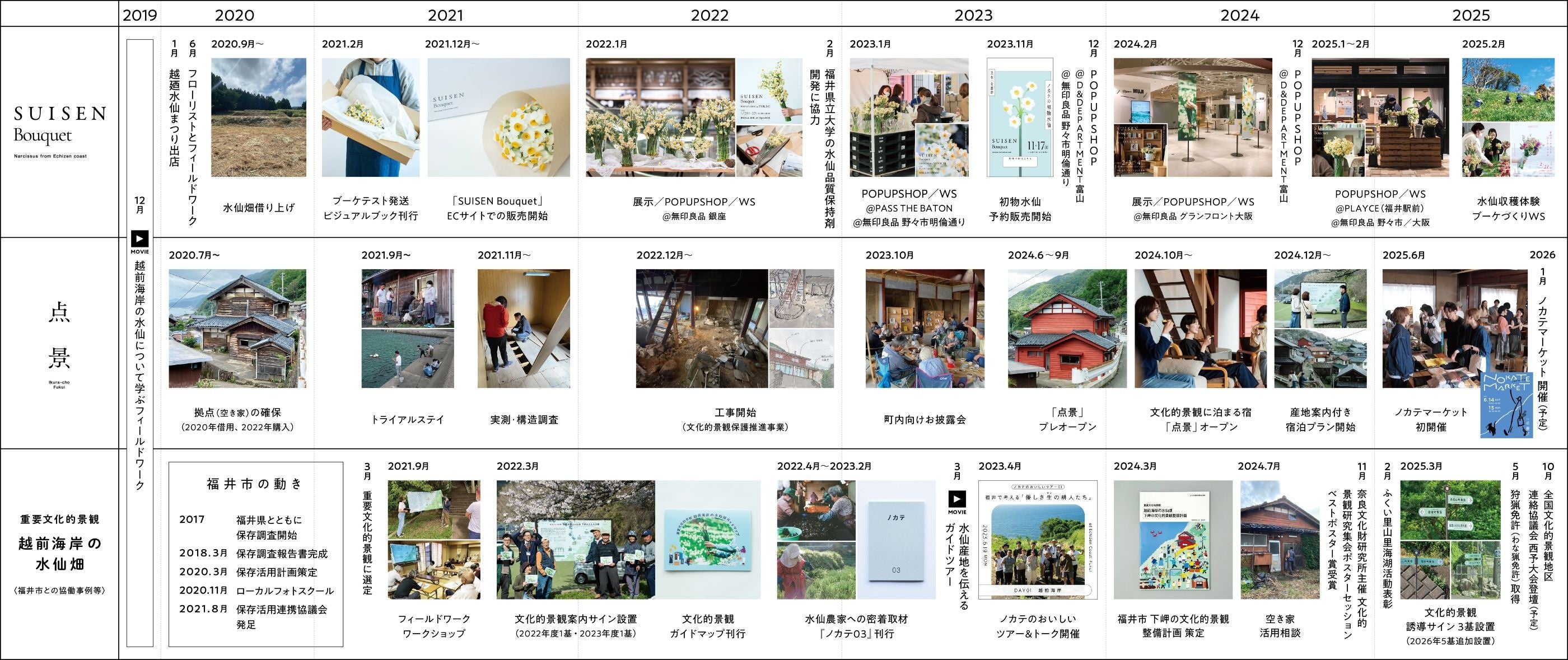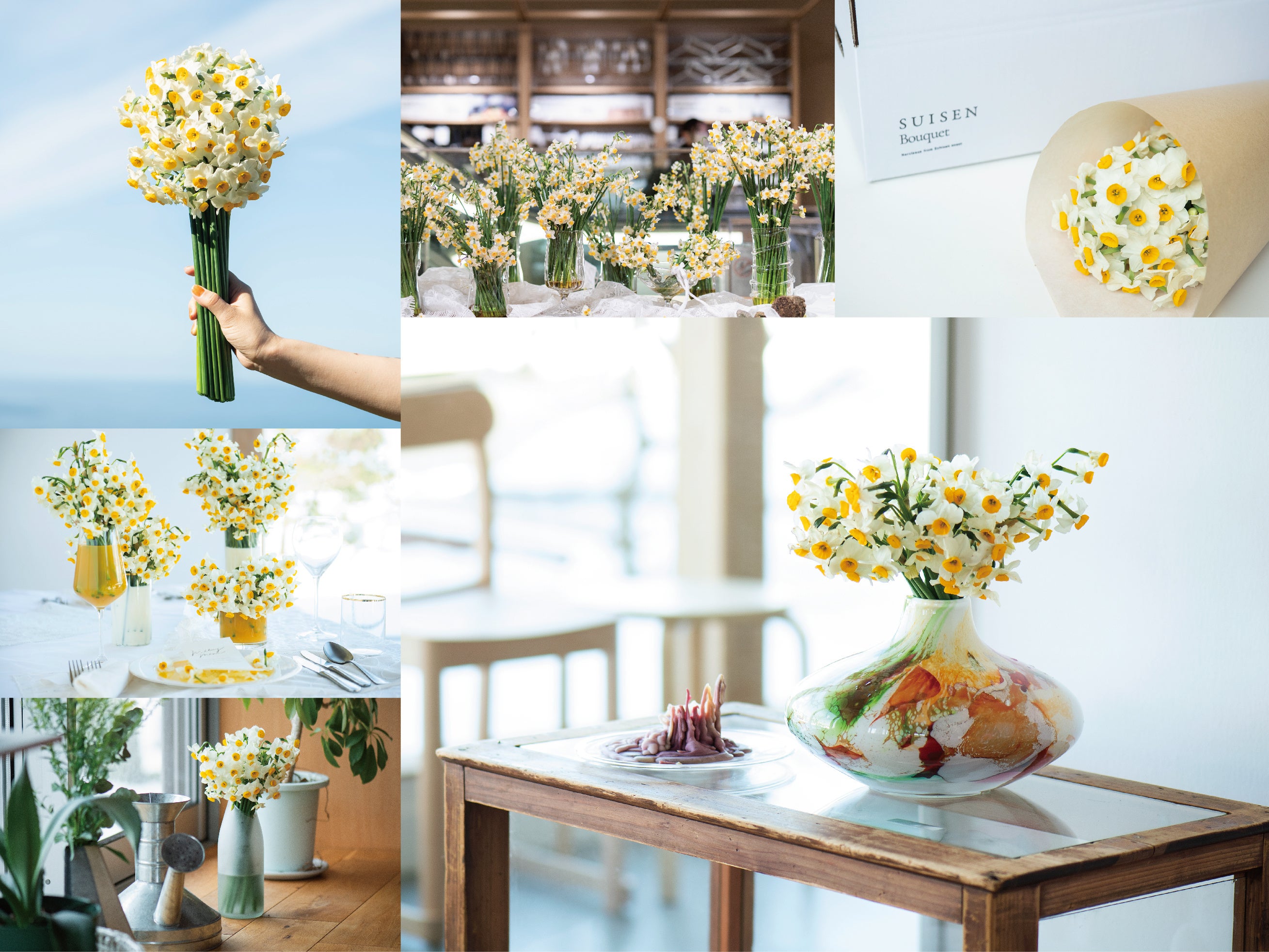 今年も水仙の開花シーズン(12月〜3月頃)に、「SUISEN Bouquet」の予約販売に加え、福井県内外でPOP UP出店を予定しています。また、一棟貸しの宿「点景」では、通常の宿泊に加えて、越前海岸の水仙を使ったブーケづくりのワークショップやマーケットイベントを開催予定です。