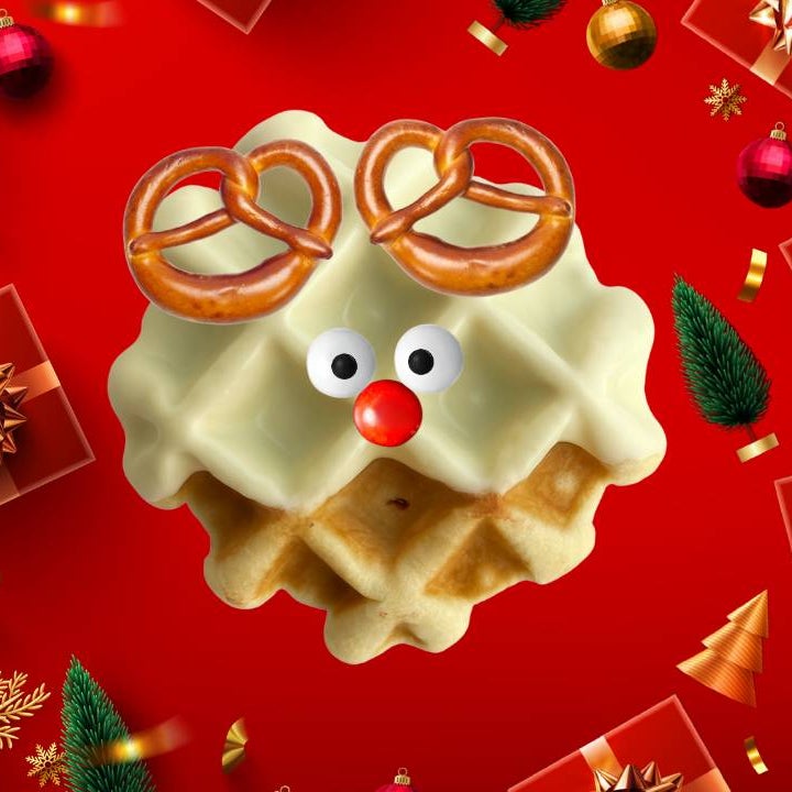 外はサクッと、中はふんわりのワッフルにチョコをコーティング!食べるのが惜しくなるほどかわいいトナカイさんのクリスマス限定スイーツ。