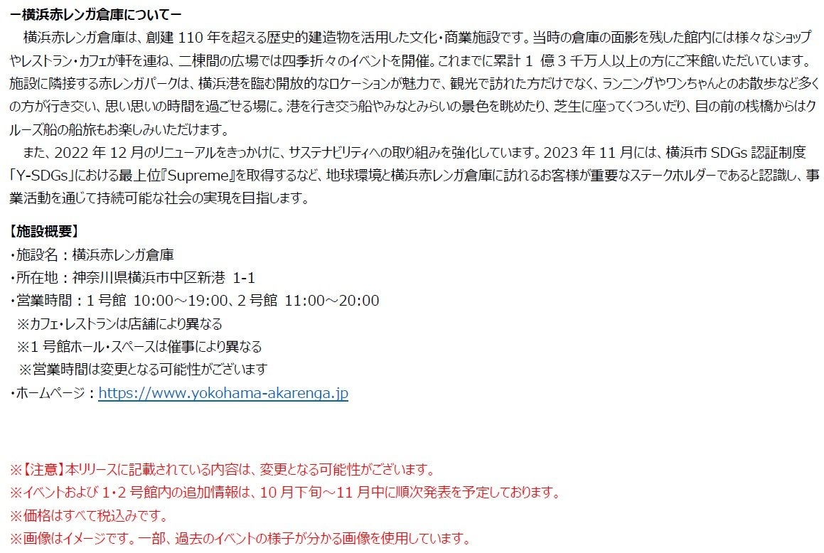 ・開催場所 :横浜赤レンガ倉庫 イベント広場 (住所:横浜市中区新港1-1)