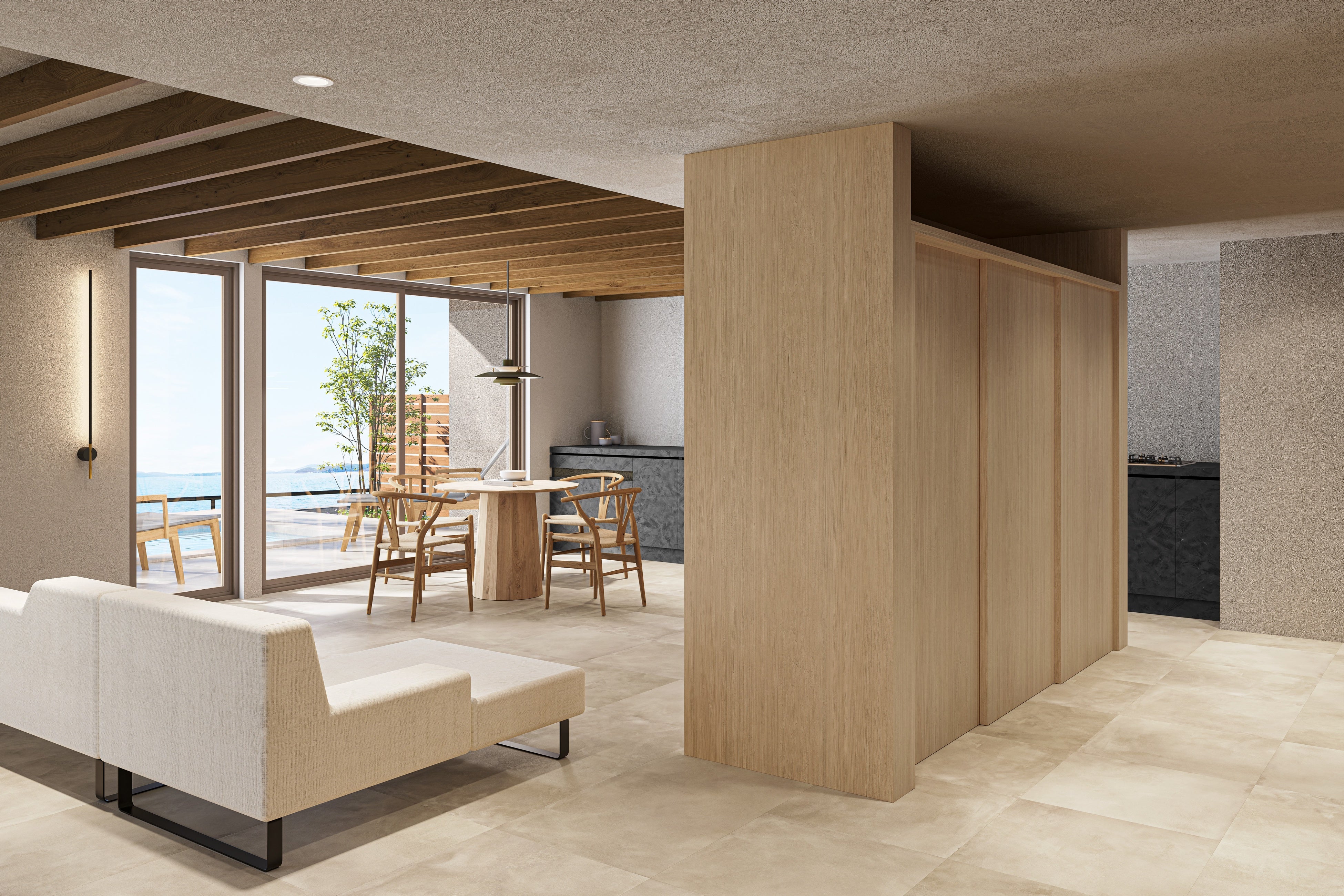 海風、潮の香り、陽の光、植栽の緑――五感で自然を感じられる建築デザインを採用。静寂と開放感の中で、心身をリセットするひとときを過ごせます。