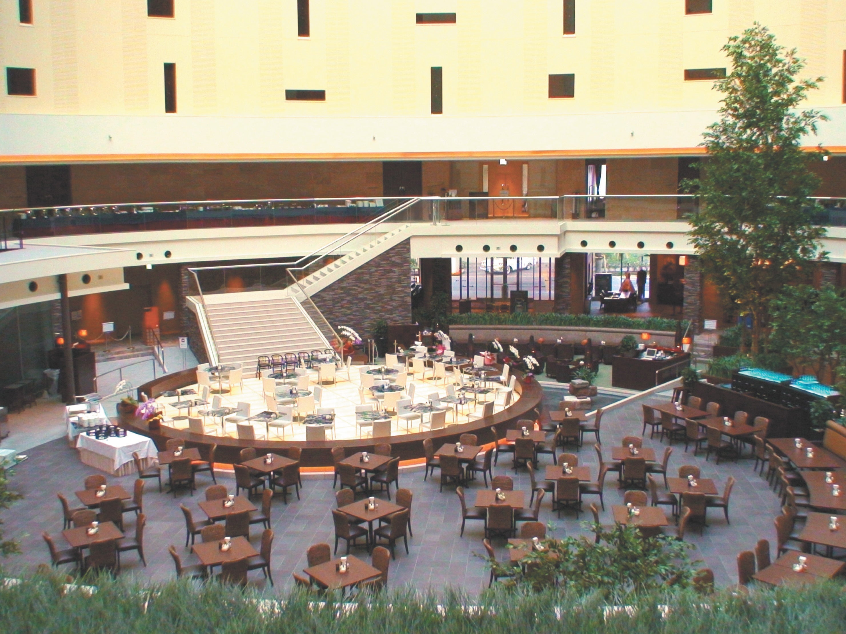 会場は、11層吹き抜けのアトリウムに位置するレストラン ファインテラス。自然と調和した雰囲気の中で、お子様から大人までご一緒にお楽しみいただけます。