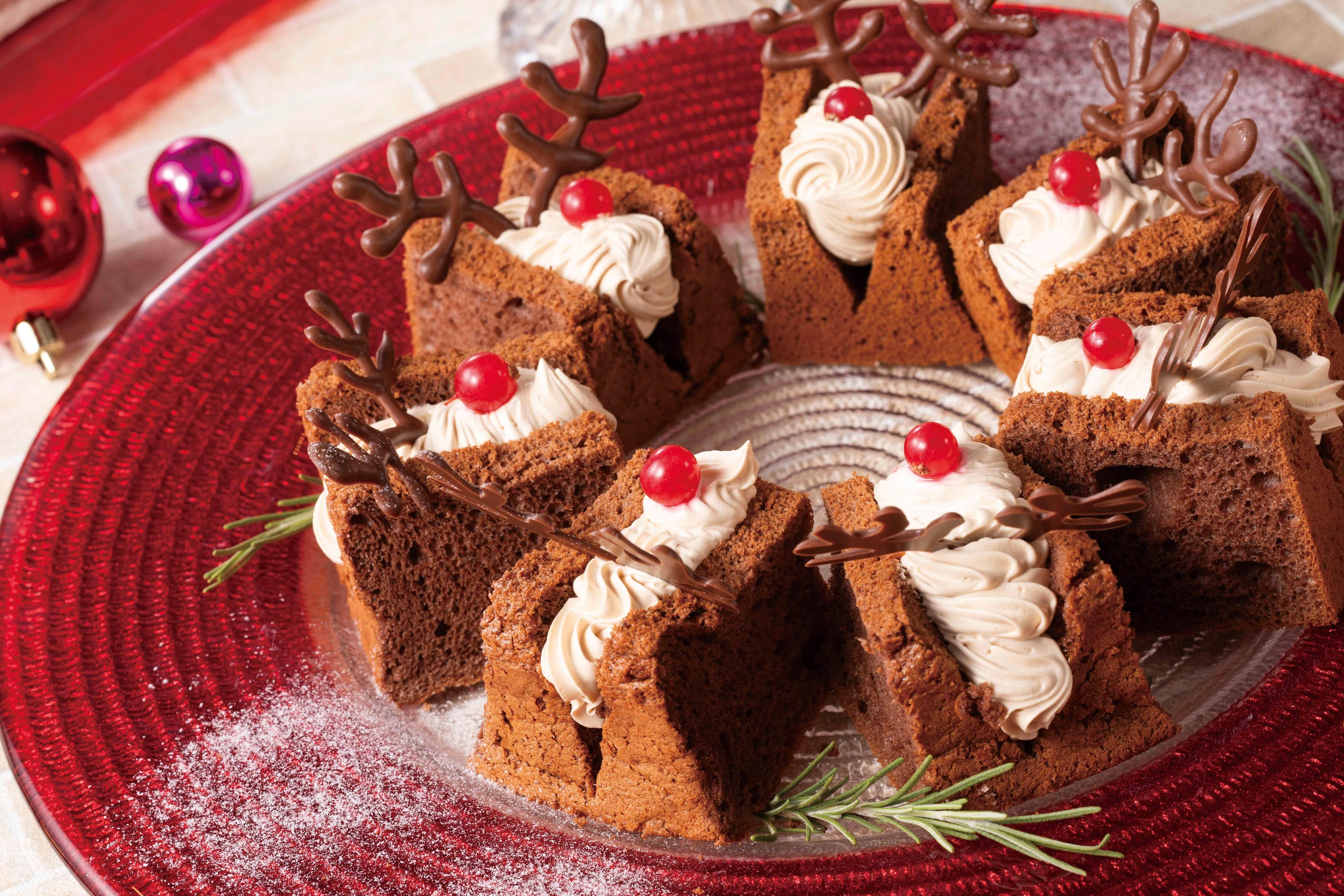 クリスマス定番ケーキ「ブッシュ・ド・ノエル」のほか、ドライフルーツとナッツの食感がたのしい「クグロフ」、豊かに栗が香る「パリブレストモンブラン」や「トナカイのカフェモカシフォンケーキ」など、クリスマスの雰囲気を盛り上げるスイーツが大集合。