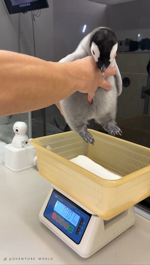アドベンチャーワールド(和歌山県白浜町)で2025年9月30日(火)に誕生したエンペラーペンギンの赤ちゃんが、 SNS上で大きな話題となり、公式X・Instagram・TikTokの累計総インプレッションが 【1億2千万】を突破しました。 誕生直後から毎日発信してきた成長記録に、「JUST A BABY」「かわいすぎて抱っこしたい」「ぬいぐるみよりぬいぐるみ」「本物なの!? と疑うほどふわふわ」「どうやったらペンギンの赤ちゃんを量る仕事に就けますか?」「舌がスパイキー!? はじめて見た」といった、世界中からの驚きと愛情にあふれたコメントをいただいています。 SNS最大の反響を得た動画では、飼育スタッフが体重計ふわふわの赤ちゃんを乗せる様子に、 公開後2日で640万再生を記録し、今年最大級の反響となりました。