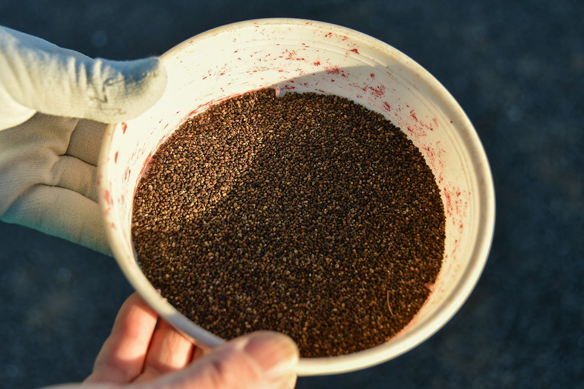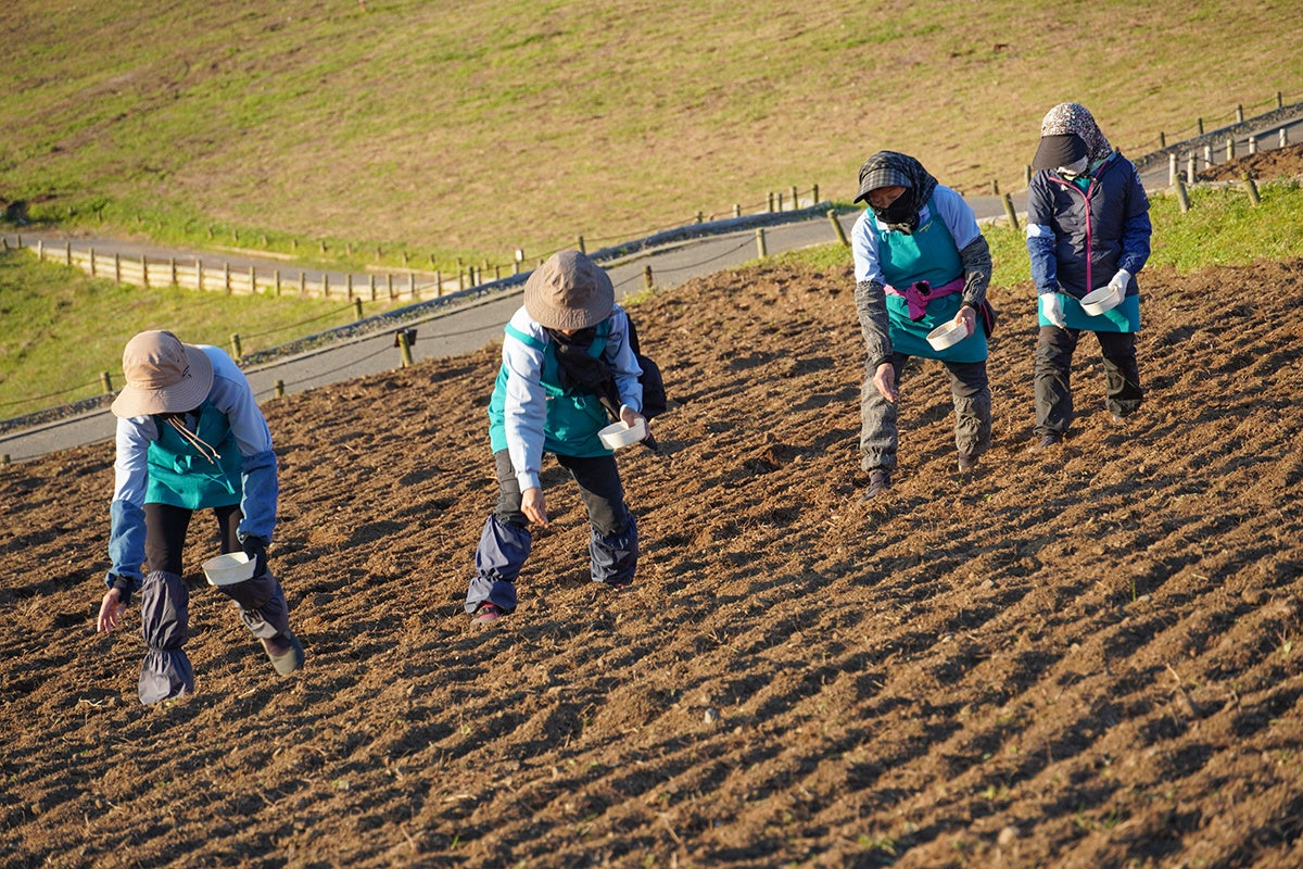 約4.2haの広大な丘に、すべて手作業で種をまきます