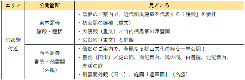 京都駅を発着点とし、特別公開寺社の入場料金や乗車料金がセットになった、便利なプランを設定しました。