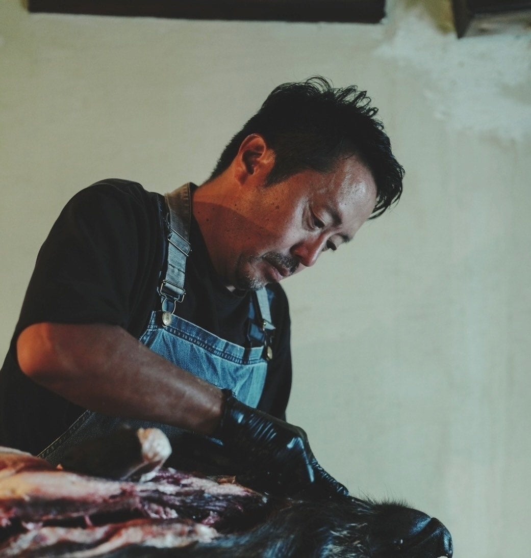 沖縄に移住後、2008年に出張料理店『名前のない料理店』を開業。沖縄食材のみを使用した独創的なコース料理はたちまち話題となり、沖縄県内のみならず国内および海外にも多くのファンを持つ。2021年、自身のアトリエを改装し、カウンターレストラン『Mauvaise herbe(モヴェズ エルブ)』をうるま市にオープン。沖縄で育まれた「命」と日々丁寧に向き合い、唯一無二のコース料理を生み出し続けている。
