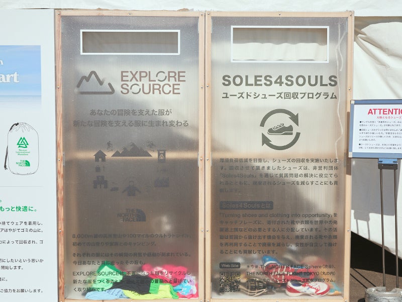 ザ・ノース・フェイスは、その他にも第17回大会から、レース参加者・来場者の不用になったTシャツやユーズドシューズを回収する取り組みを継続しており、この第20回大会でも実施します。回収されたウエアは、ザ・ノース・フェイス独自の循環型アップサイクルプロジェクトである「EXPLORE SOURCE」によって新たな製品に生まれ変わります。回収されたシューズは、再利用することでのリユースの促進となり、パートナー団体(Soles4Souls(※3))を通じて地球規模の問題解決になります。