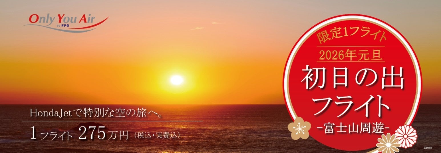 株式会社FPGは、プライベートジェット事業を営む当社の連結子会社である株式会社オンリーユーエアの航空運送代理店として、2026年元旦の「初日の出フライト」を販売いたします。