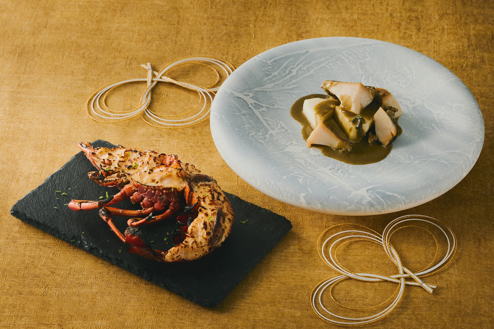 シェフとの会話を楽しみながら、目の前で仕上げる調理のライブ感を楽しめる鉄板焼。シェフ厳選のブランド牛や黒毛和牛などのステーキをメインに、期間限定のスペシャルコースをランチ・ディナー合わせて3種類ご用意します。ランチでは毛蟹や鮑を使った一品が、ディナーでは伊勢海老や雲丹、フォワグラなどの贅沢なラインナップも登場。また、ワインとのペアリングとともに、新春の祝宴にふさわしいひとときをお過ごしください。