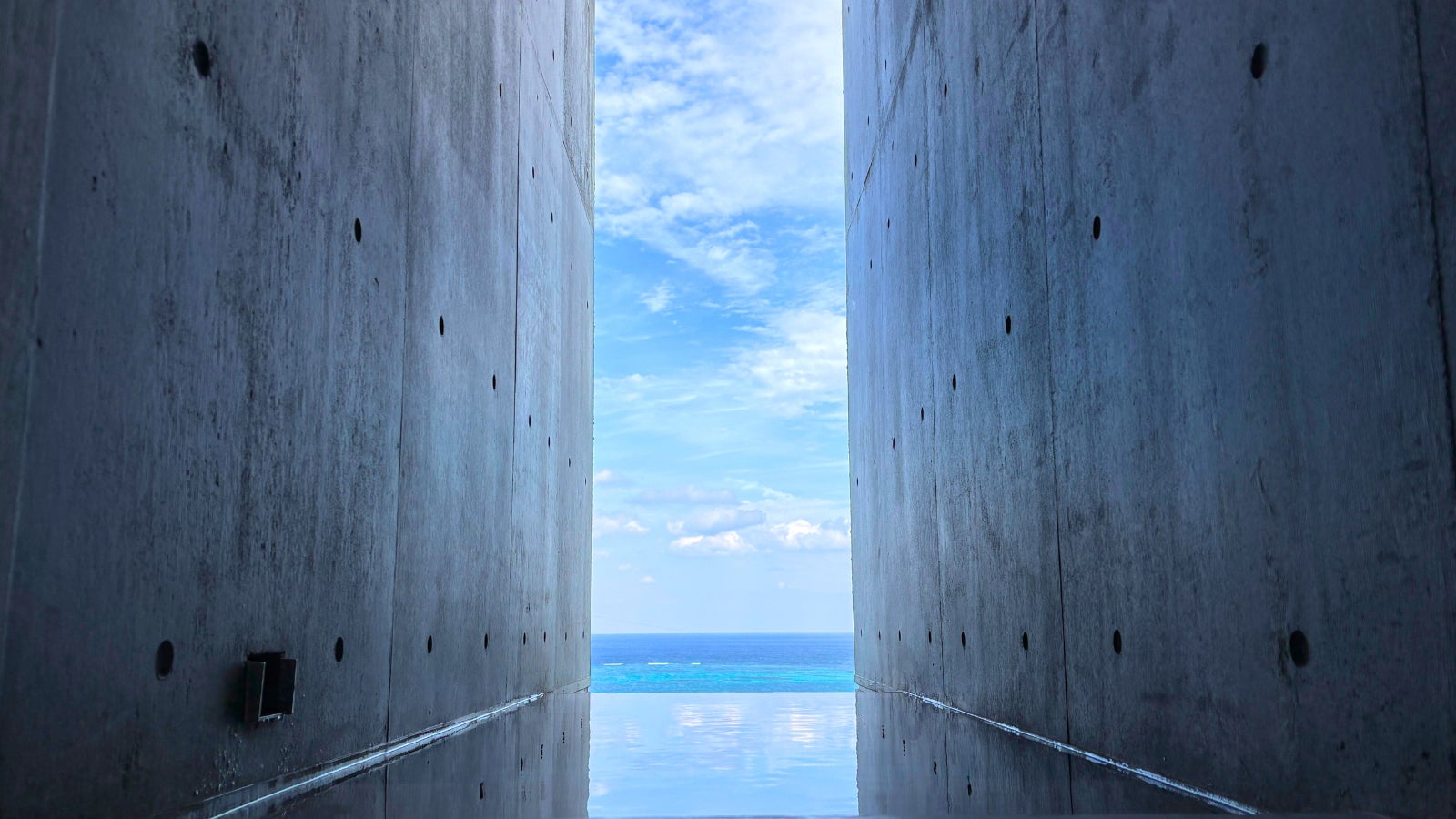 青い海と空が、まるで額縁に収められたアートのように広がります。時間と共に景色が変化する楽しみも。