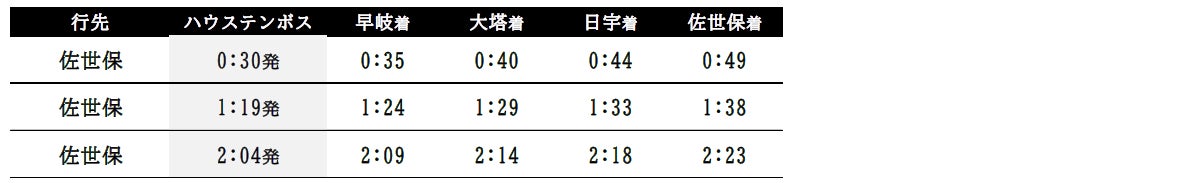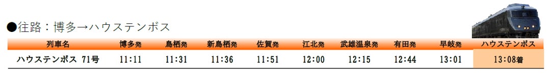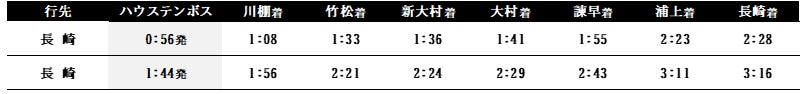 ●復路:ハウステンボス⇒長崎方面(主な駅の時刻を掲載)