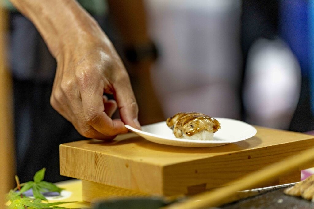 いりこみそのおむすび、ひじきサラダ、煮穴子の握り寿司、島のはちみつやジャムのス