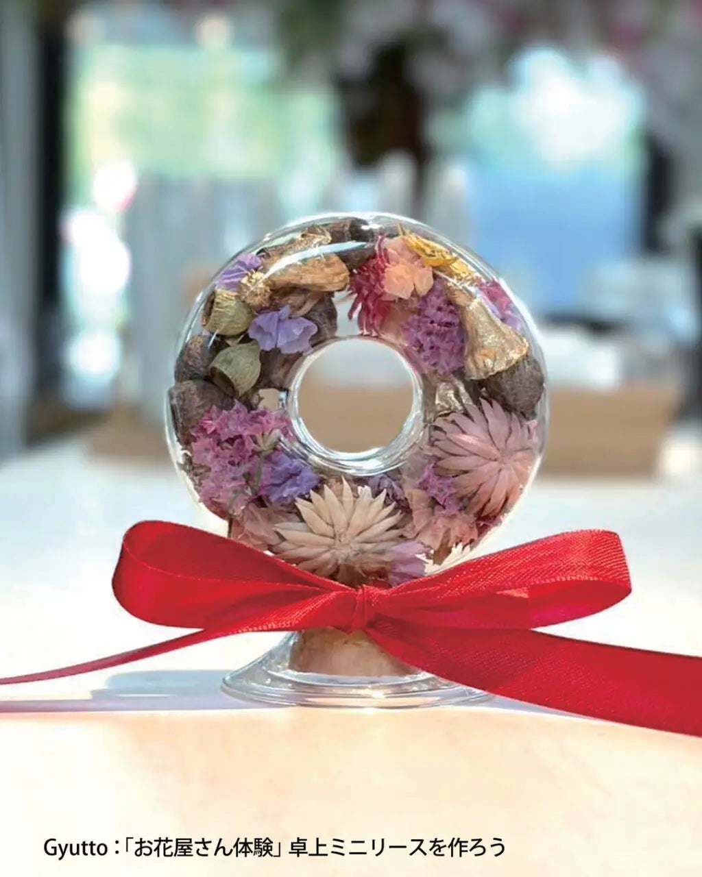 クリスマスにぴったりの卓上ミニリースづくりや、花の香りと彩りを使ったフラワードリンク作りも。