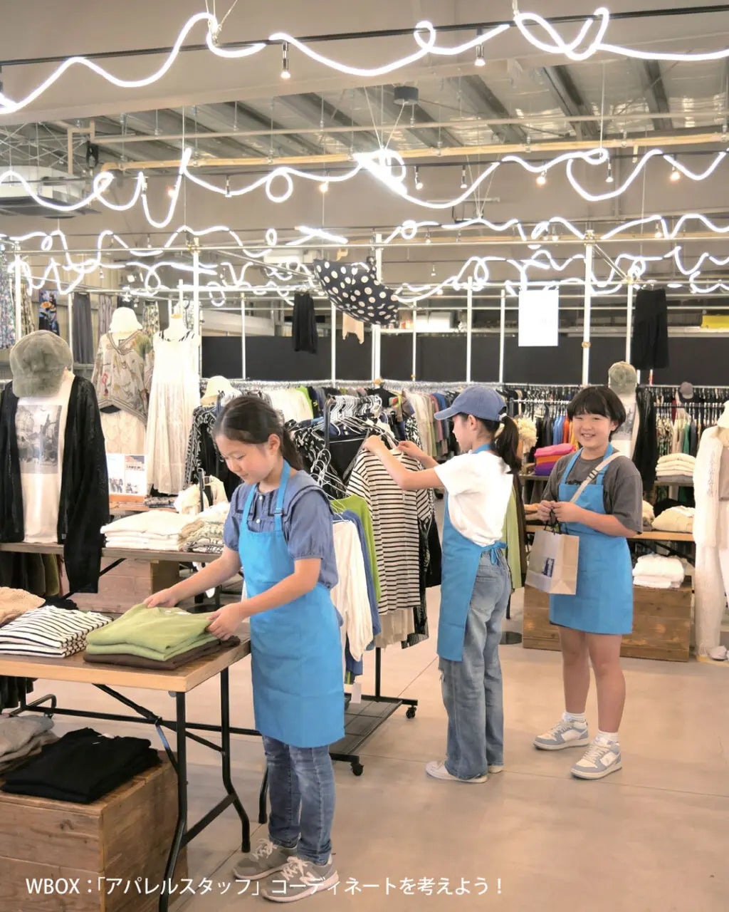 店内ディスプレイを作る楽しさを体験できます。お洋服を選んでコーディネートに挑戦!