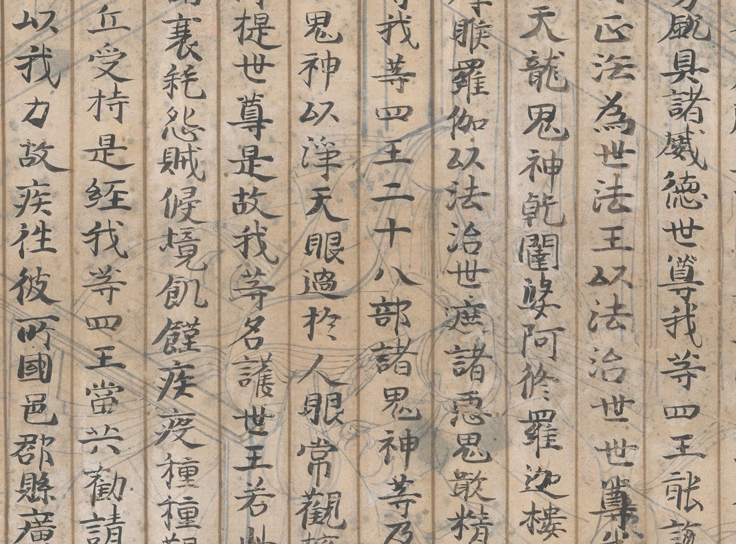 【国宝】物語下絵料紙金光明経(目無経)(ものがたりしたえりょうしこんこうみょうきょう(めなしきょう)) 巻第二(部分)鎌倉時代・建久3年(1192)頃 大阪市立美術館蔵 武藤経三氏遺贈【前期展示】
