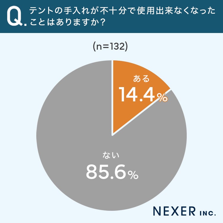 ■14.4%が、テントのお手入れが不十分で使用できなくなった経験あり
