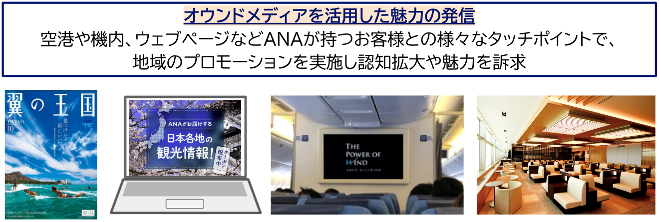 これらは、ANAグループが掲げる「地域活性化」への想いを具現化したものです。空の旅を通じて、地域の皆様、お客様、そしてANAグループの三者が共に豊かになる「三方よし」の世界を目指し、持続可能な地域の発展に 貢献してまいります。