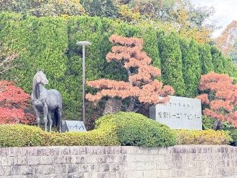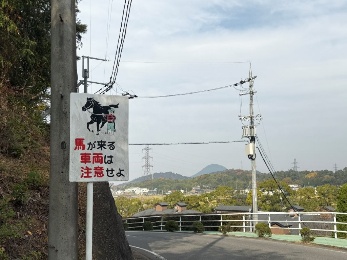 栗東トレセンでは、日本競馬史上初の五冠馬として競馬ファンに愛され続けるシンザン号の馬像が、施設に訪れる人を出迎えてくれます。そして、トレセン内では、道路に「馬が来る」の標識も。