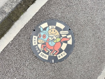 栗東の街へ出れば、飛び出し坊やの“とび太くん”も乗馬スタイル、そしてマンホールにも馬が。