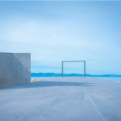 塀に囲まれた扉を開けると、目の前に現れるのは日本海へと続く一本のコンクリートの道。“花道”のように、訪れる人を雄大な海の間近にまで導く。